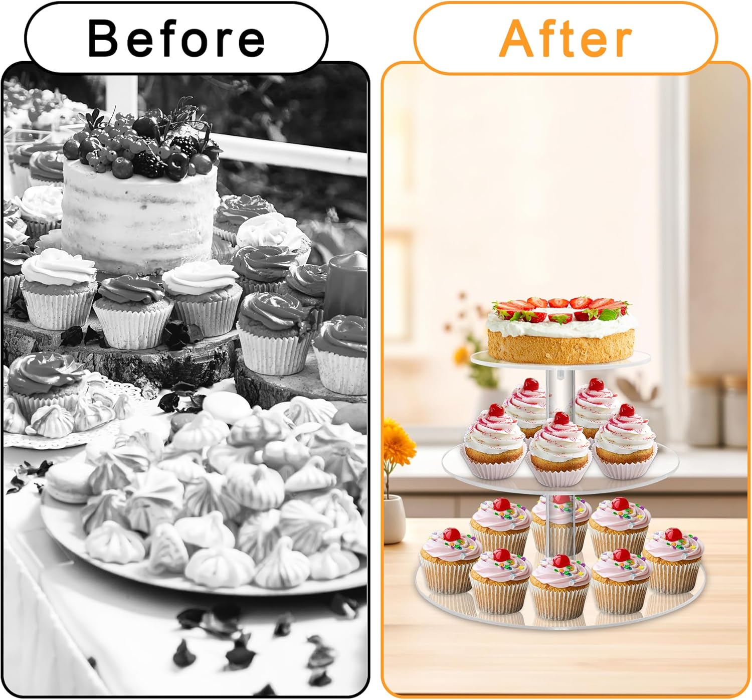Acrylic Cupcake Stand, Clear Dessert Display Hoder Stand With Base for Wedding, Party, Baby Shower, Get-together, 3 Tier Round, Transparent