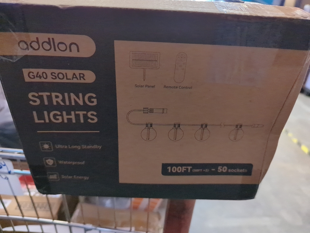 3. addlon 54FT(48 6) Solar String Lights Outdoor Waterproof with USB Charging & Remote Control - Dimmable Solar Power Patio Lights with LED Bulbs for Porch, Garden, Yard, Market, Bistro - Last for 20 Hrs
