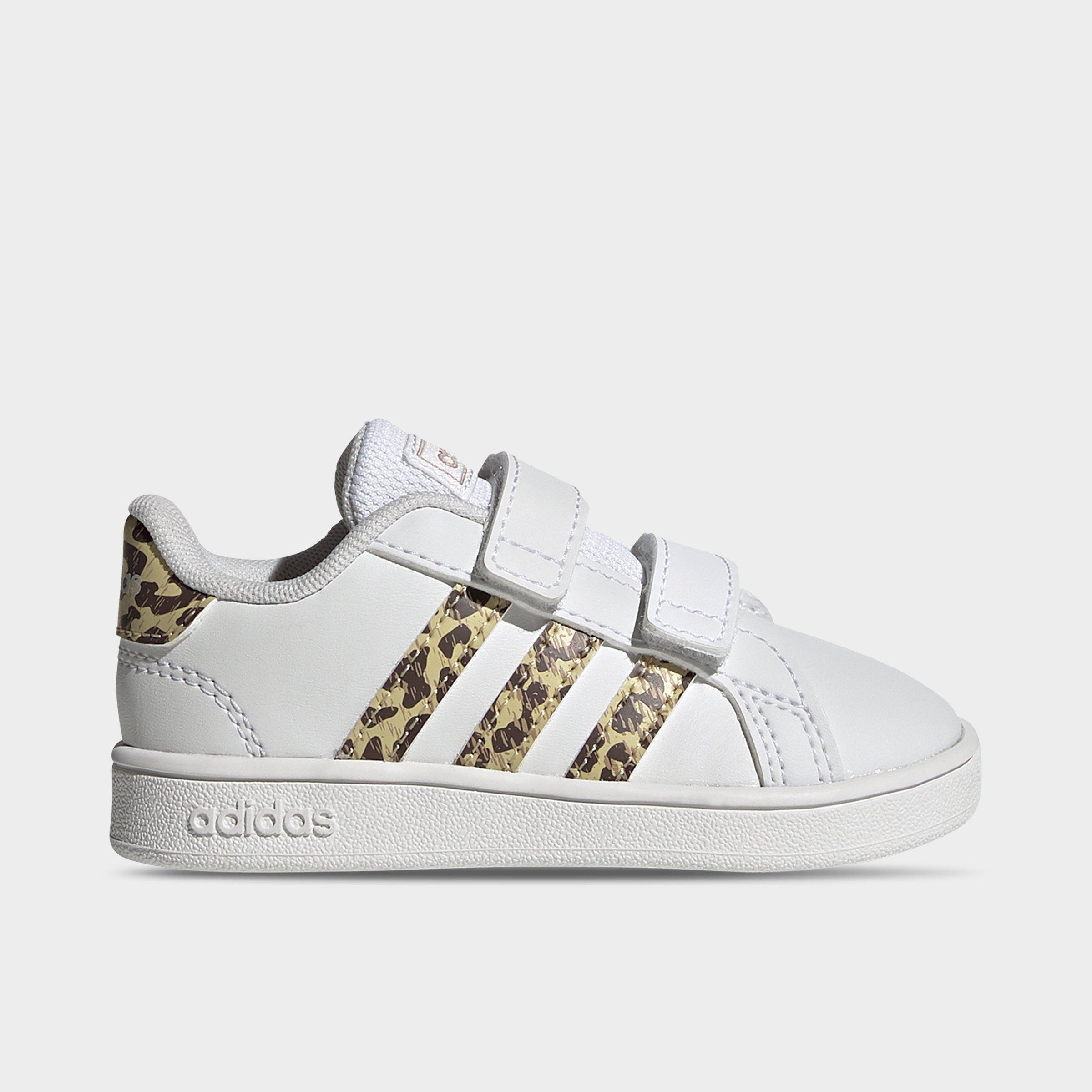 Adidas Girls' Toddler and Little Kids' Essentials Grand Court Animal-Infill Casual Shoes in White/Animal Print/White Size 8.0 Leather