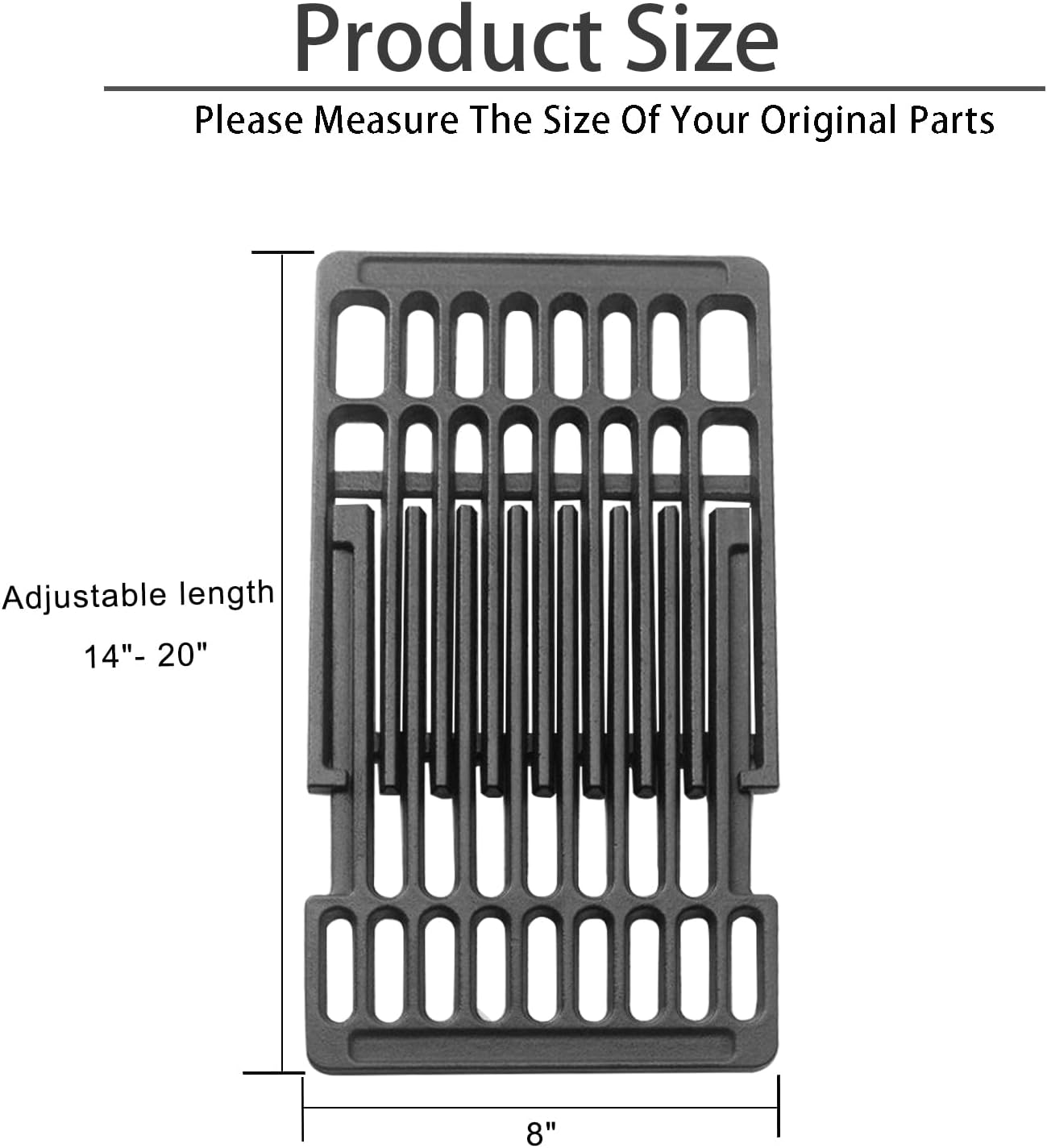 Adjustable Cast Iron Grill Grates, Universal Cooking Grid Grates Replacement for Gas Eletric Grill, Extends from 14" to 20" L, 8" Wide, 3 Pack
