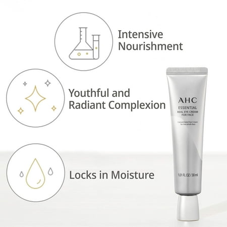 Aesthetic Hydration Cosmetics (AHC) Essential Eye Cream is a premium concentrated all-in-one eye cream to be used as a face moisturizer for the whole face This facial moisturizer uses unique microemulsion technology to absorb easily into skin and provide nourishment for the whole face The Essential Real Eye Cream for Face has anti-aging properties with a proprietary blend of vitamins and peptides that help reduce the appearance of fine lines This face cream improves skin texture and tone for a youthful appearance and radiant facial complexion The rich yet refreshing texture of the cream helps lock moisture into skin.One tube of this Aesthetic Hydration Cosmetics Real Eye Cream for Face sells every three seconds and fits seamlessly into any skincare regimen