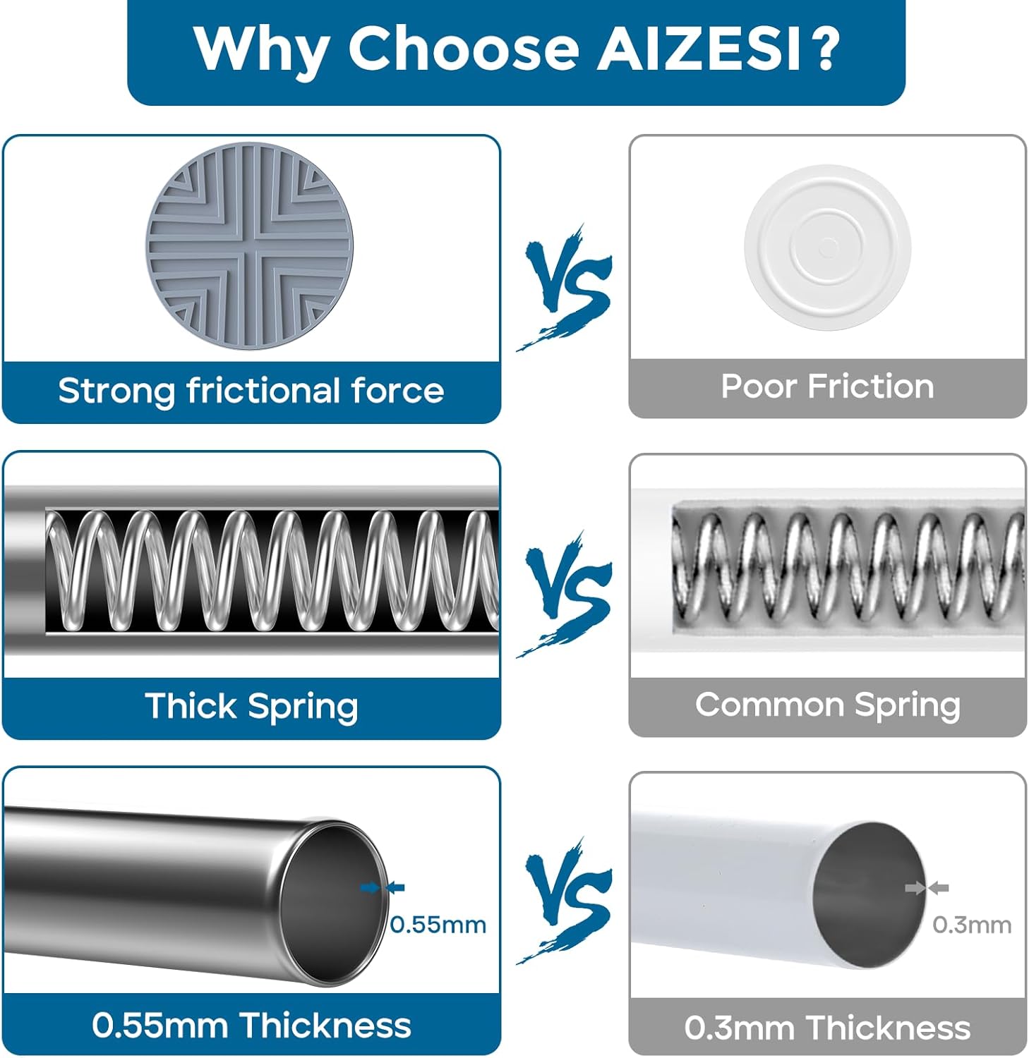 【Non-Slip】:This silver tension rod we've incorporated our latest high-strength built-in spring, enhancing stability, effectively preventing drops, and improving the overall user experience.
