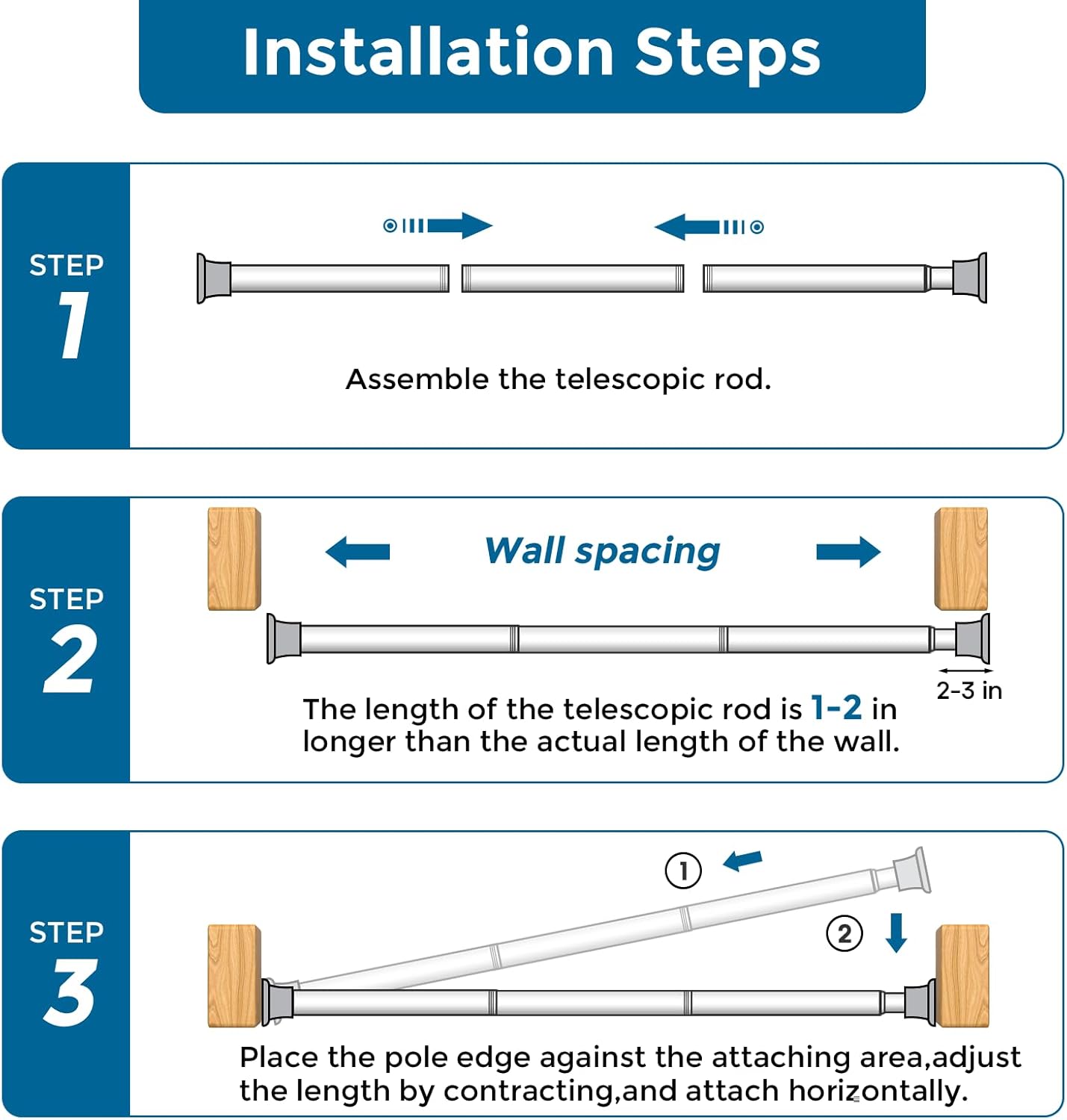 【Product Material】:This tension rod was made of high-quality stainless steel. It is resistant to rust, bending, and deformation. The sleek stainless paint finish adds a touch of simplicity and elegance, making it perfect for your home.