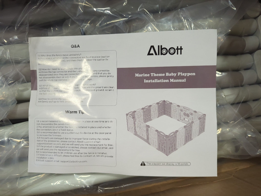 HDPE Safety Material & Large Area - Our baby fence is made of premium HDPE materials, CPC and ASTM certisfied, so that it will not harm your baby's health. 18 Panels Enough for 2-4 children to play in the safety activity center.