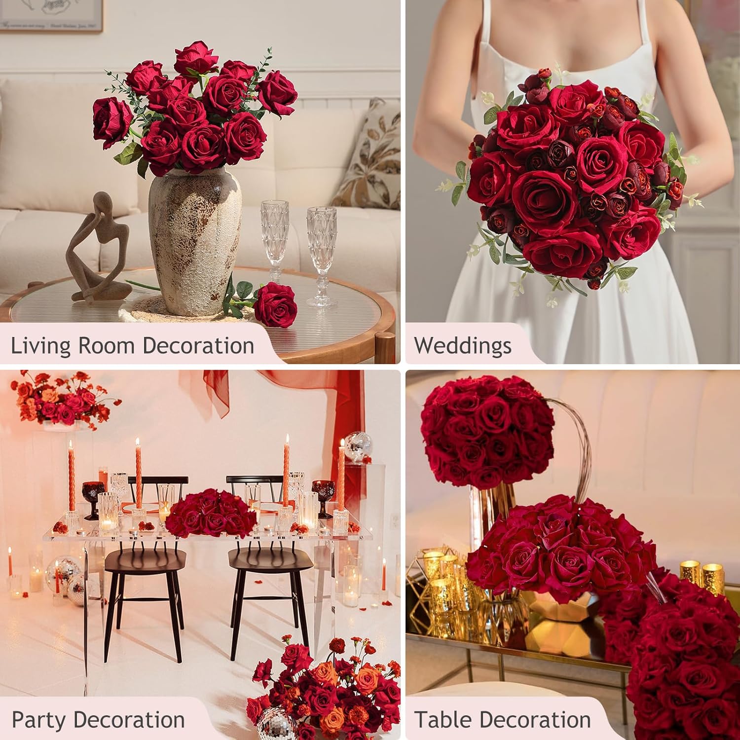 Alecono Red Roses 20Pcs - 4in Real Touch Artificial Roses, Velvet Soft Fake Flowers with Long Stems for Mother’s Day, Wedding Centerpieces, DIY Home Decor