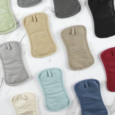 Heavyweight. Durable 100% cotton-twill construction with dual-sided silicone treatment for a confident, no-slip grip. Take the heat. Heat protection up to 500℉ (260℃). Firm but flexible. All-CladSilicone Pot Holders offer a firm grip along with premium flexibility that conforms to different shapes. Available in a variety of lively colors to fit your personal palette Machine wash.