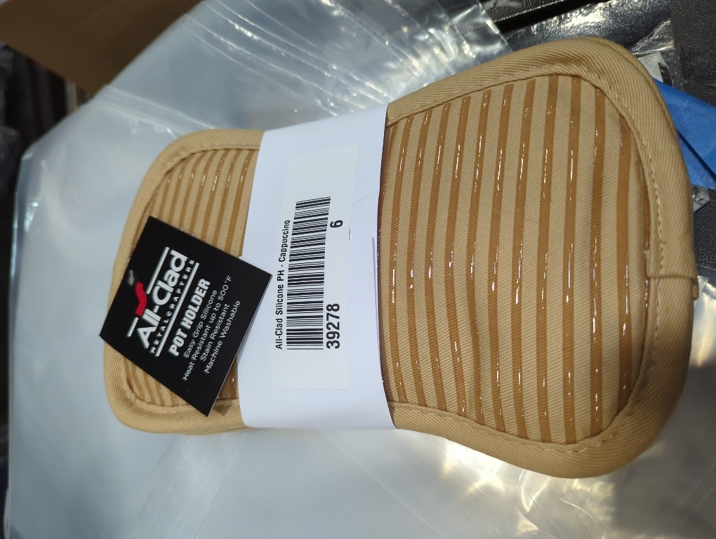 MAXIMUM HEAT PROTECTION. All-Clad Pot holders with silicone grip offer heat resistance up to 500 degrees Fahrenheit (260 degrees Celsius). Having a reinforced thumb area made of fire resistant fibers means your hands will be protected when grabbing hot items from the oven or grill.