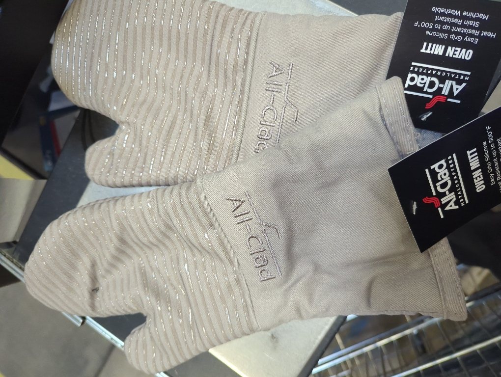 All-Clad Premium Silicone Oven Mitt: Heat Resistant to 500 Degrees - 100% Cotton & Silicone, 14"x7" Pot Holder for Kitchen and Barbeque, (2-Pack), Titanium Gray