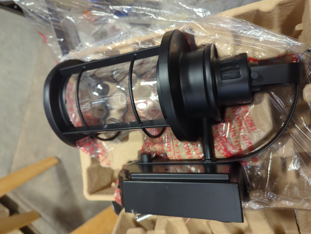 Outdoor wall lantern with motion sensor.