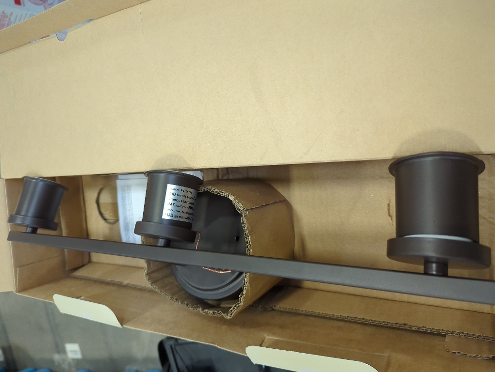 Transitional style with a modern flair, this vanity light makes for a handsome addition to any home. This distinctive vanity light features stepped and tapered clear glass shades mounted to a straight bar and round base all in a sleek matte black finish, to create a clean and stylish look that will dress up any bathroom or powder room. Damp rated; this fixture can be installed in damp locations such as bathroom vanity areas 3-light bathroom vanity light uses 3 E26-medium based bulbs, 60-W maximum (not included)