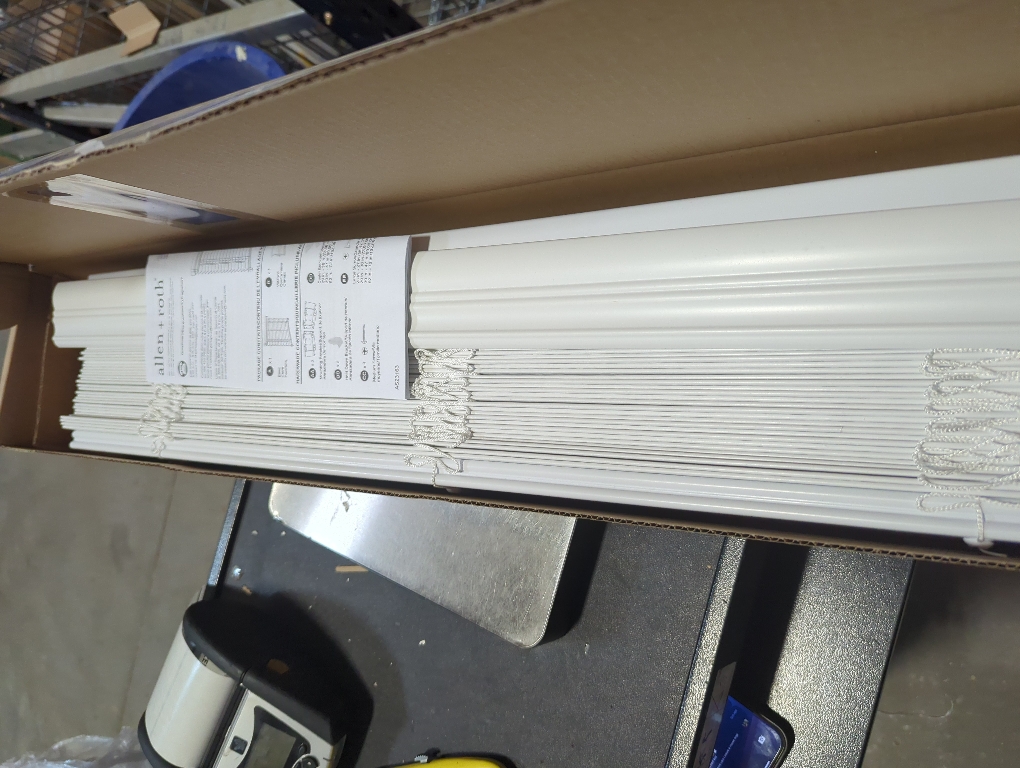 allen roth Trim at Home 2-in Slat Width 35-in x 72-in Cordless White Faux Wood Room Darkening Horizontal Blinds