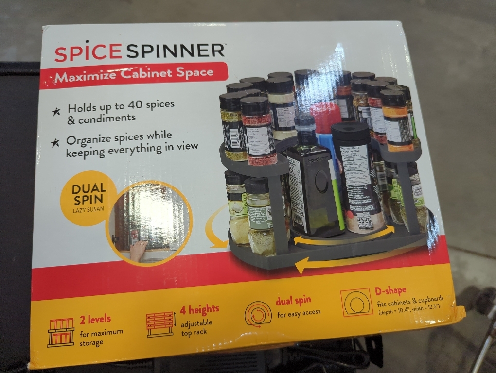 Revolving Spice Organizer: The spice spinner has dual spin turntables to keep spices organized and easily accessible.