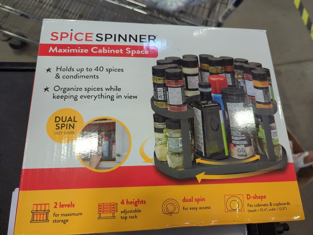 Revolving Spice Organizer: The spice spinner has dual spin turntables to keep spices organized and easily accessible.