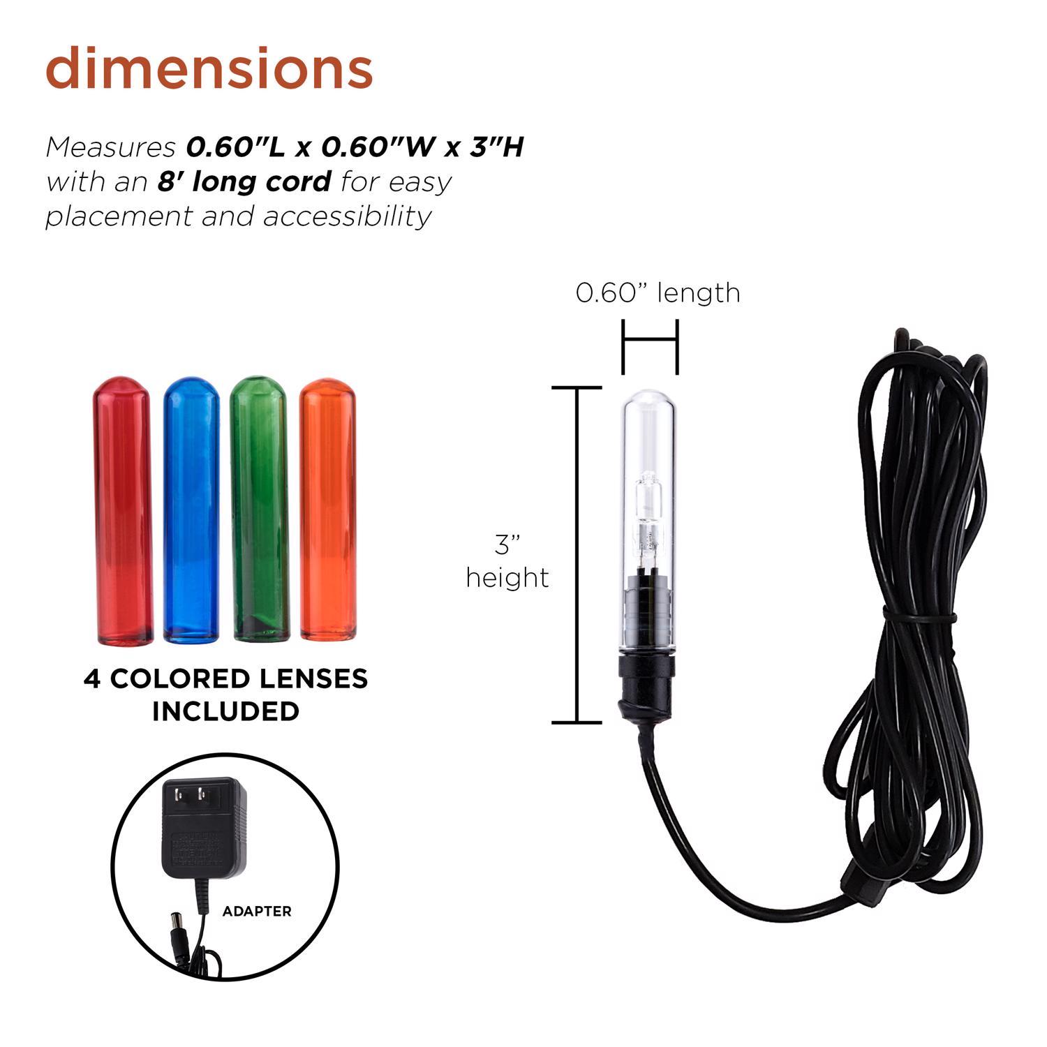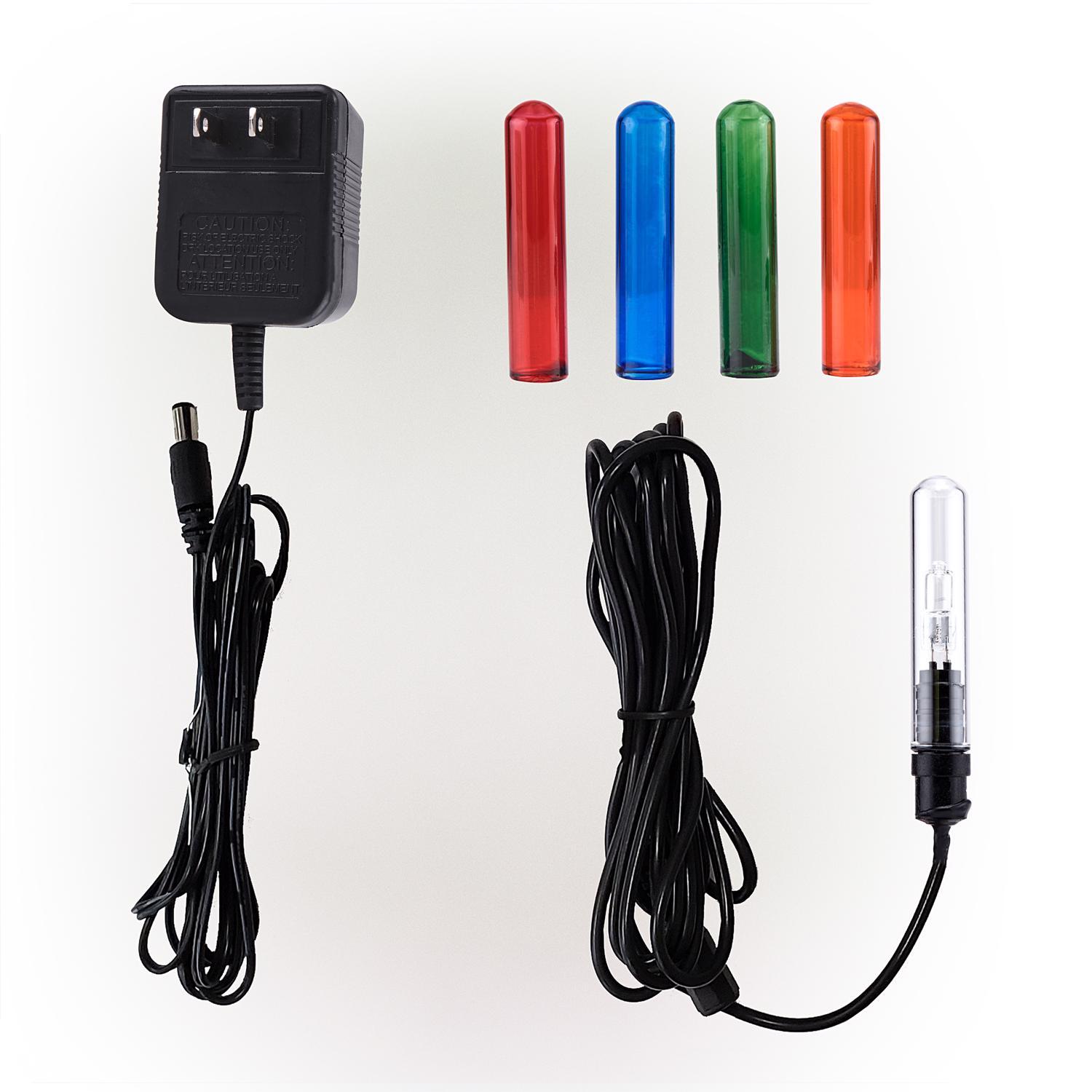 What's better than a fountain for your garden. Lights for your fountain, of course. Say hello to the Submersible Fountain Light with Transformer. These 5 watt submersible fountain lights illuminate your fountain and highlight its features at the same time. The set comes with 4 color lenses and a transformer. This light allows for quick installation and is ready to go in seconds. Compact pond light measures 0.6 in. D x 3 in. H with an 8 ft. long cord for easy placement and accessibility. Alpine Corporation is one of America's leading designers, importers, and distributors of superior quality home and garden decor products. Alpine Corporation's award winning in house design team continuously develops new and innovative "statement pieces" for your home and garden. Your indoor and outdoor living spaces will be the envy of the neighborhood with our wide assortment of fresh, fashionable and contemporary products, from beautifully crafted solar garden stakes featuring patented motion and fiber optic lighting technology to beautiful fountains and delightful bird baths and feeders.