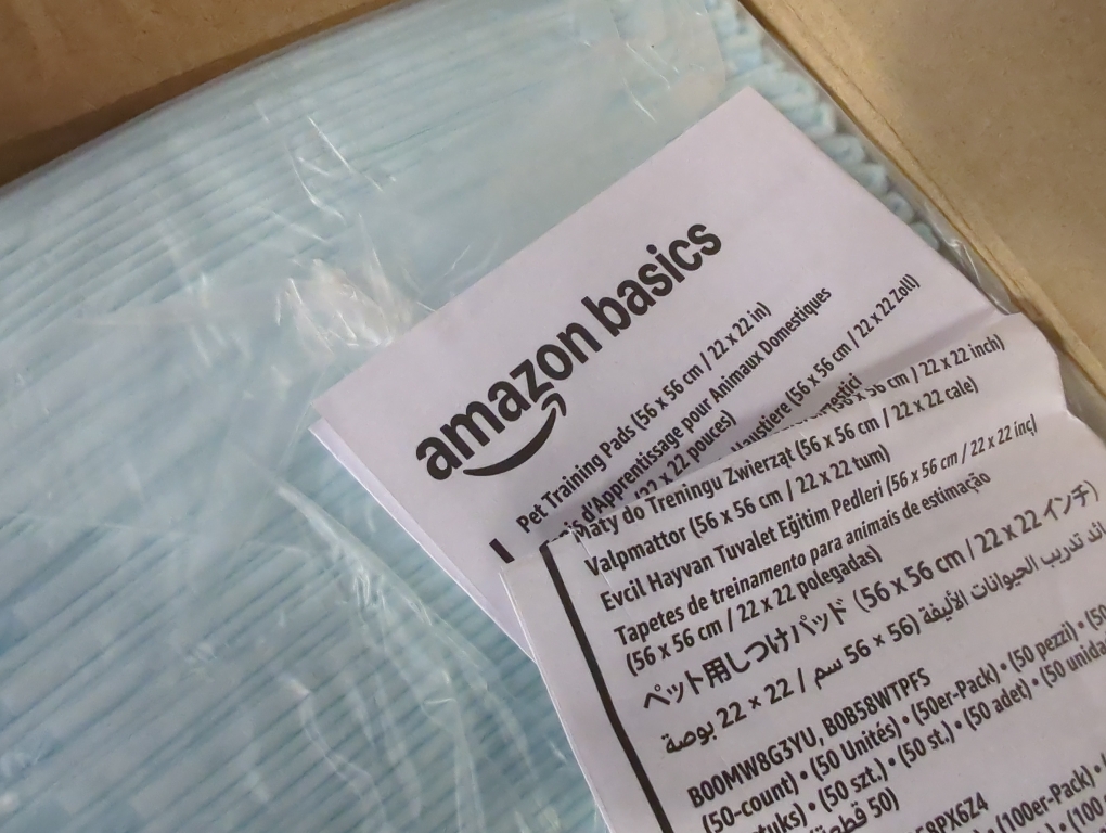 Amazon Basics Dog and Puppy Pee Pads, 5-Layer Leak-Proof Super Absorbent, Quick-Dry Surface, Potty Training, Regular (22x22"), 100 Count, Blue & White