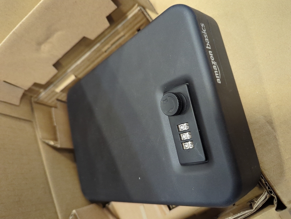Amazon Basics Portable Security Case Lock Box Safe, Small Lock Box with Code, for College Dorm Room, Home, Combination Lock, Large, Black