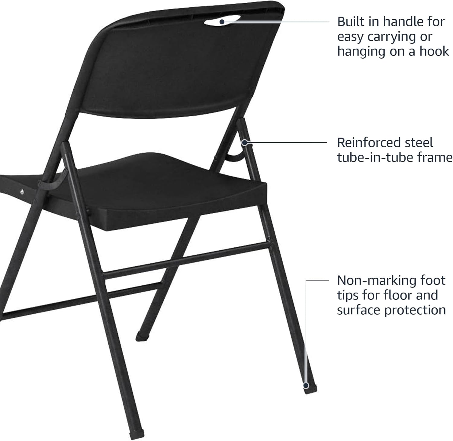Amazon Basics Sturdy Foldable Plastic Chair, Portable, 350-Pound Capacity, Black, 6-Pack