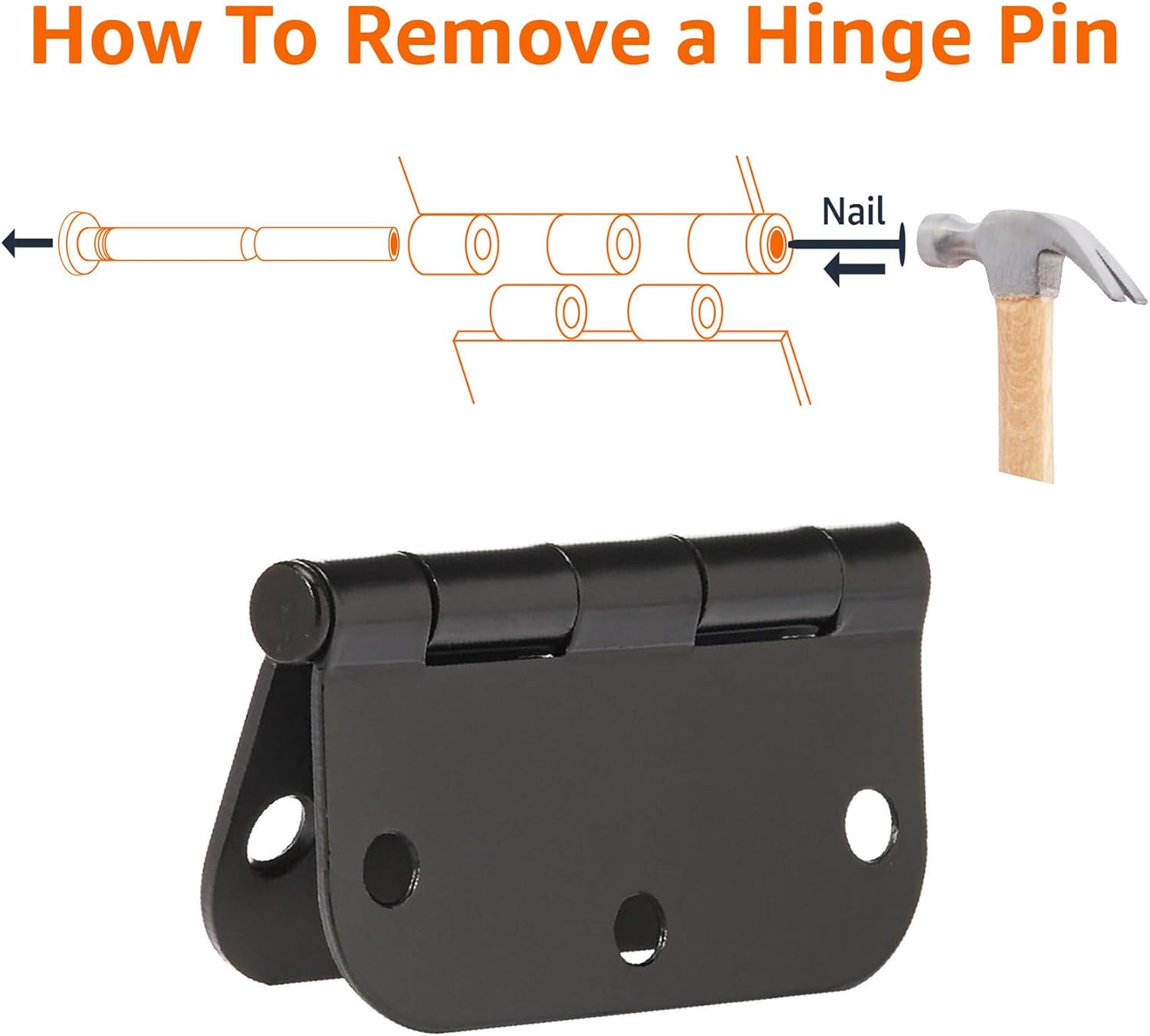 Amazon Basics Sturdy Rounded 5/8 Radius Interior Door Hinges, 3.5" x 3.5", 18 Pack, Matte Black