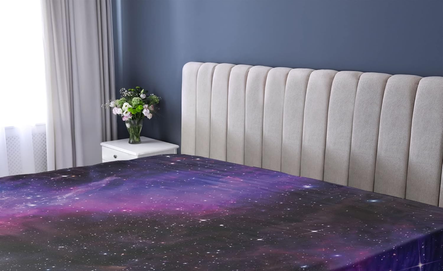 3. Ambesonne Space Fitted Sheet, Nebula Dark Galaxy Luminous Stars and Cosmic Rays Astronomy Explore Theme, Bed Cover with All-Round Elastic Deep Pocket for Comfort, Twin XL Size, Magenta Blue