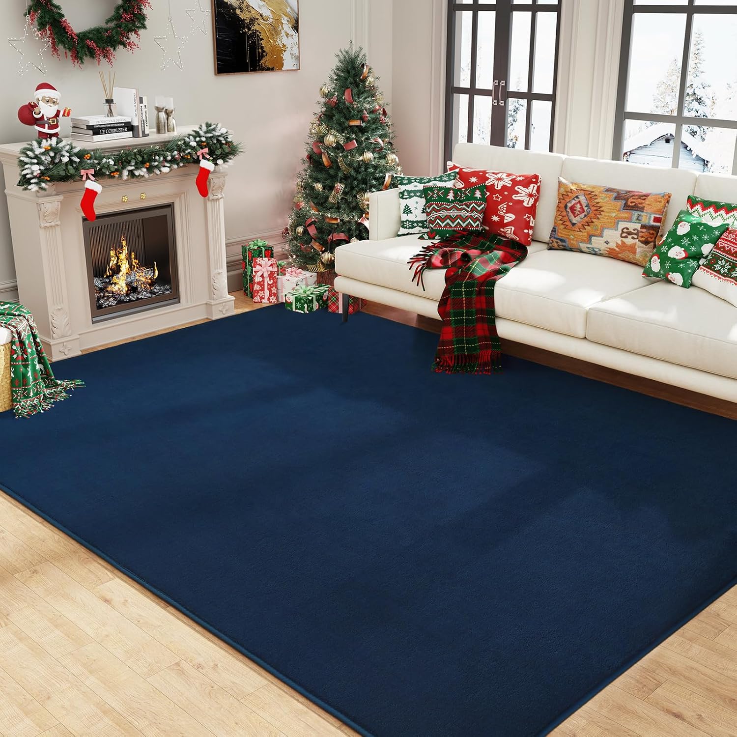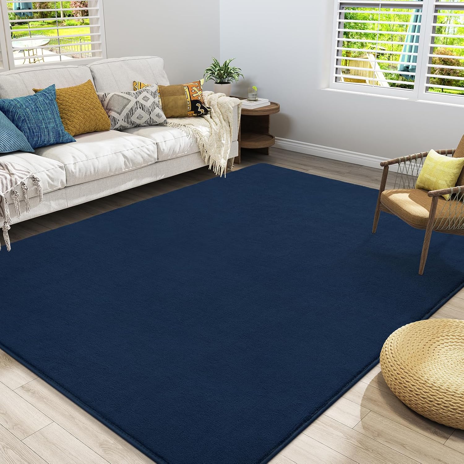 Modern Home Decor: This minimalist area rugs features a classic solid color design and a variety of sizes to meet your needs for different places, this navy blue fluffy rug is soft, resilient and won't fade, making it a great choice for contemporary interiors