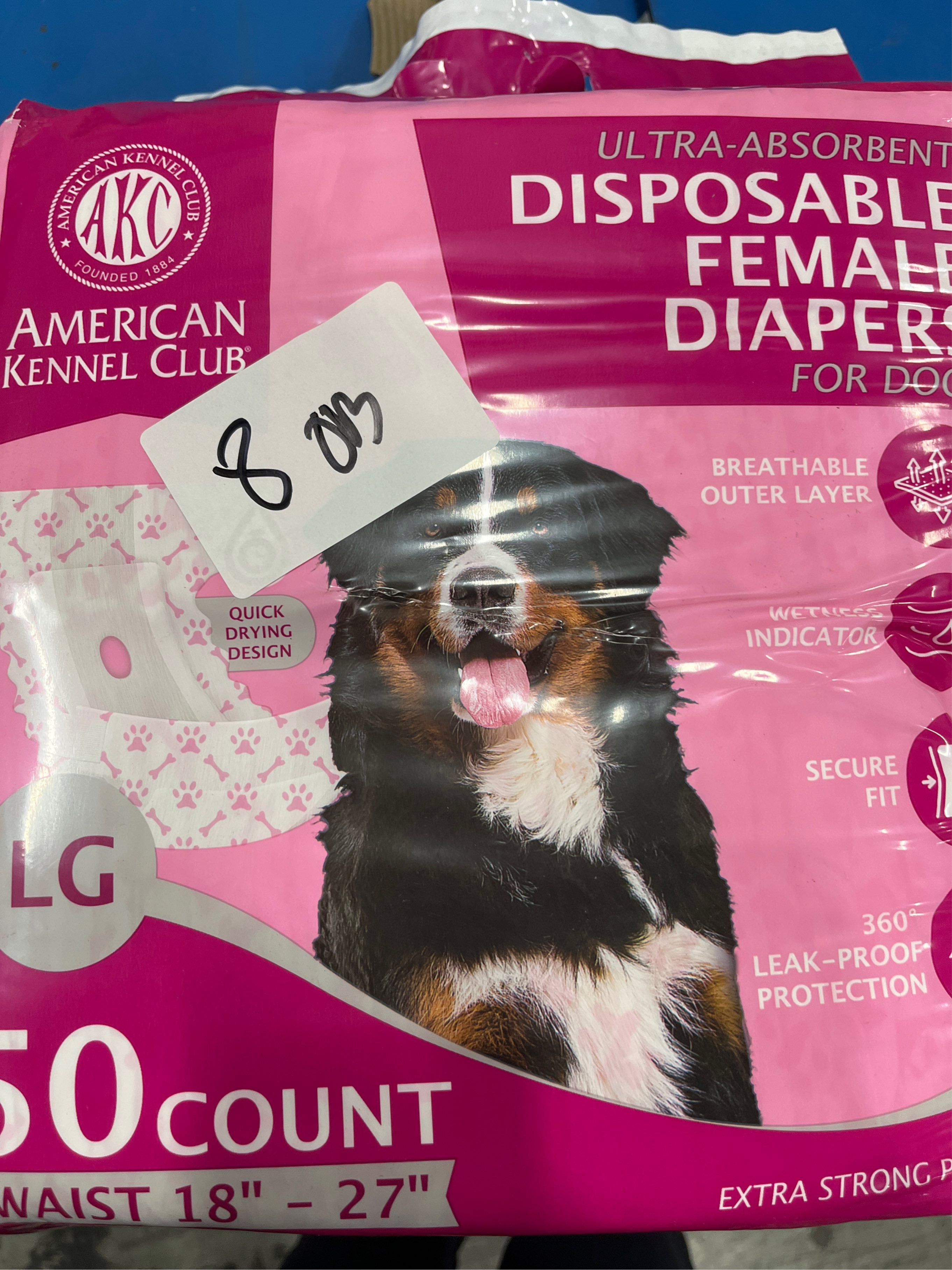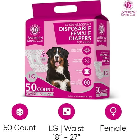 American Kennel Club Female Dog Wrap, Disposable Diapers with Wetness Indicator, Large, 50 Count