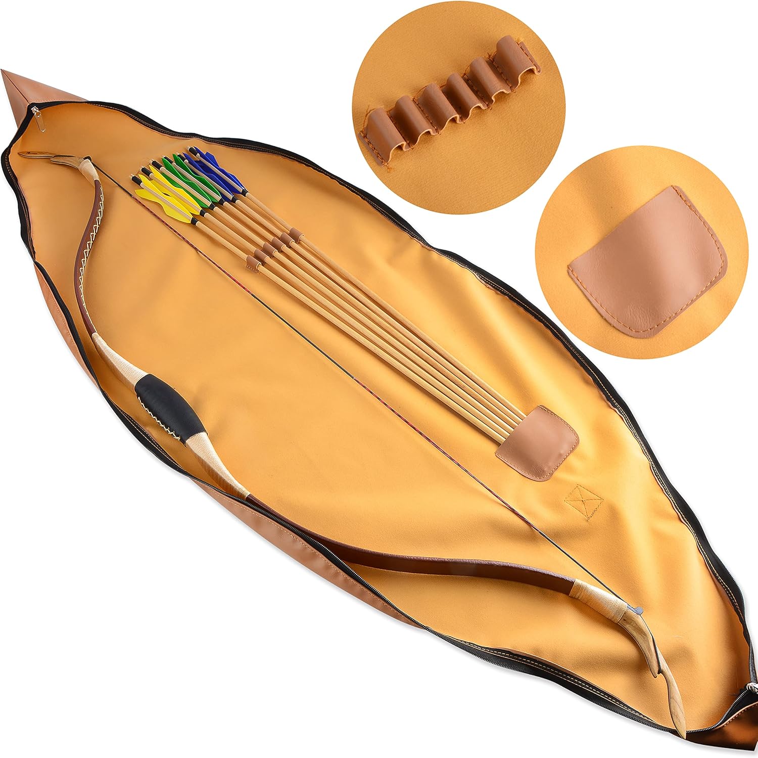 AMEYXGS 60inch Archery Traditional Bow Bag Longbow Case Leather Recurve Bow Case Hunting Recurve Bow Carry Bag Case for Outdoor Shooting Leather Bow Bag