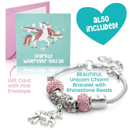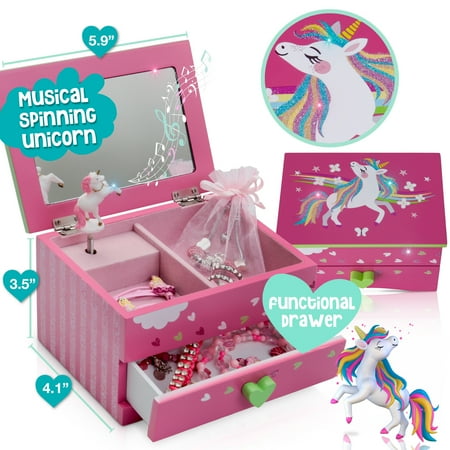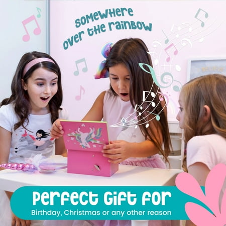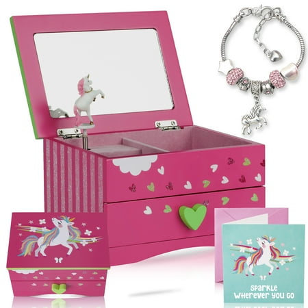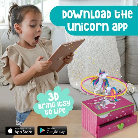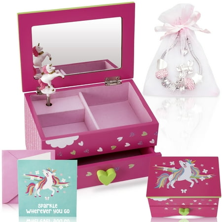 Amitie Lane Itsy Unicorn Musical Jewelry Box, Unicorn Charm Bracelet, Girls Ages 6 , Fuchsia Pink