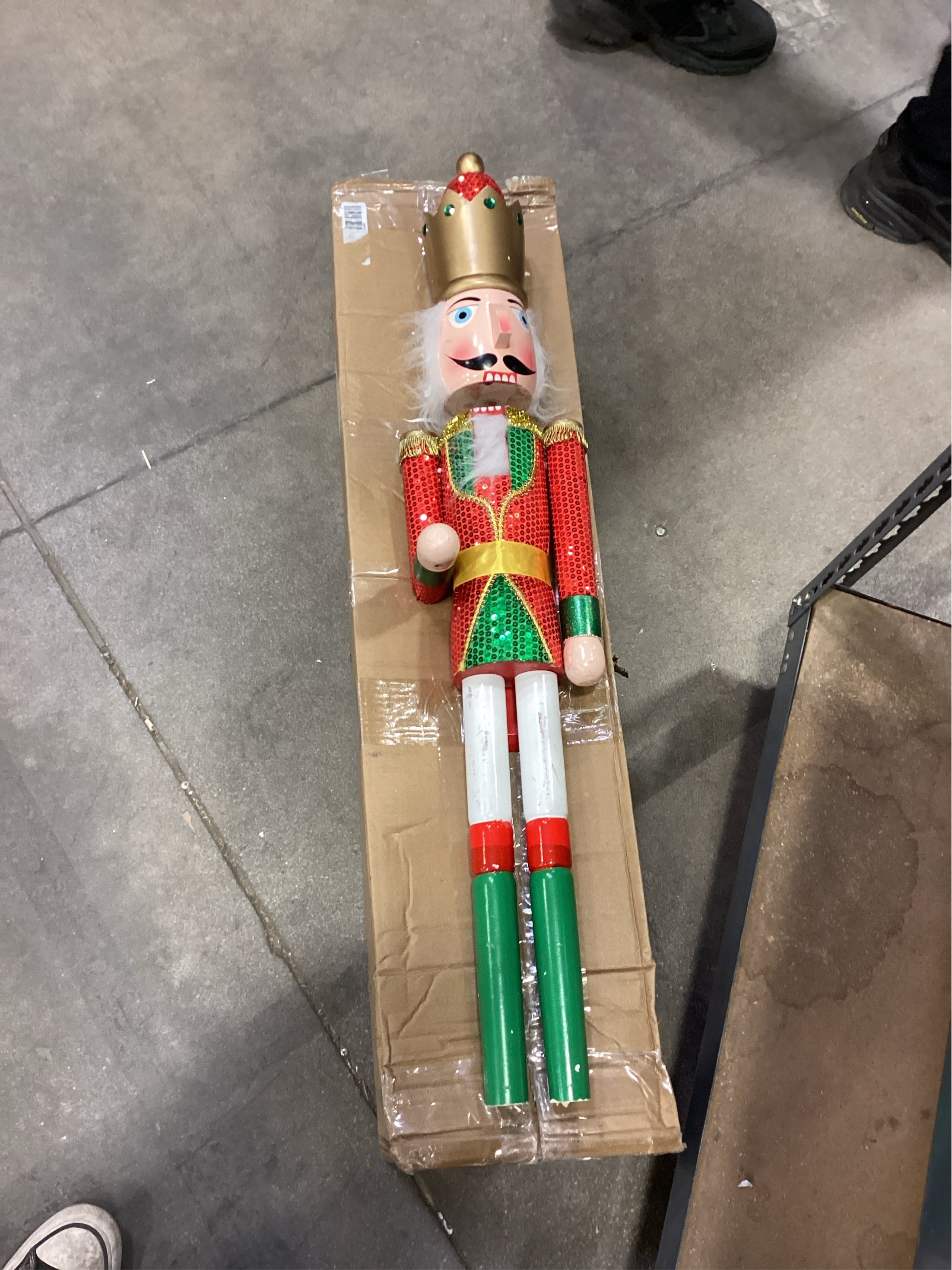 AMOR PRESENT 2.9Ft Christmas Nutcracker Figure, Large Shiny Wooden Nutcracker for Christmas Tree Front Door Hotel Decorations needs to be glued head and feet