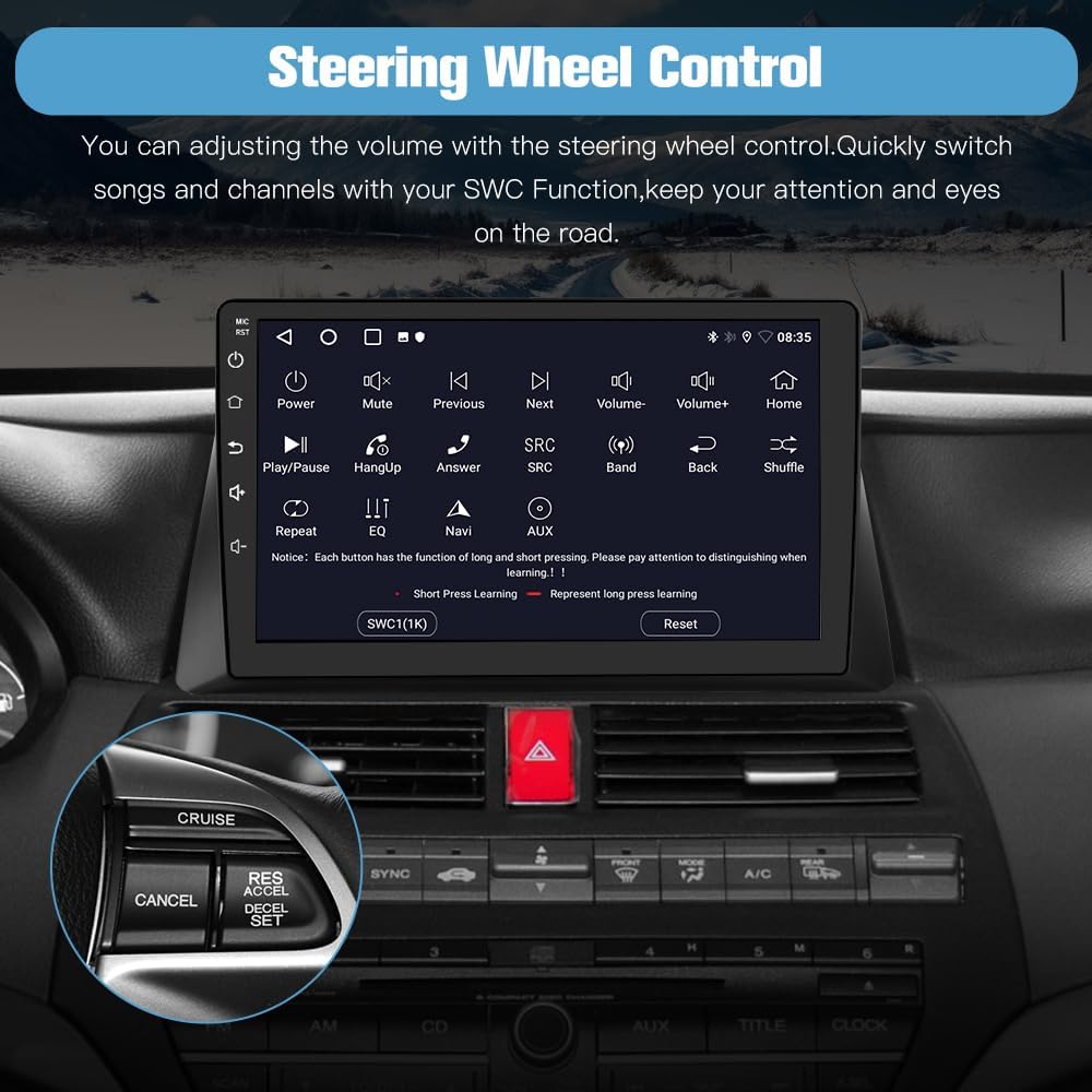 Android Car Radio Stereo for Honda Accord 2008 2009 2010 2011 2012 2013 Wireless CarPlay Andriod Auto 2G 64G with SWC WiFi GPS Navigation DSP BT FM with Backup Camera