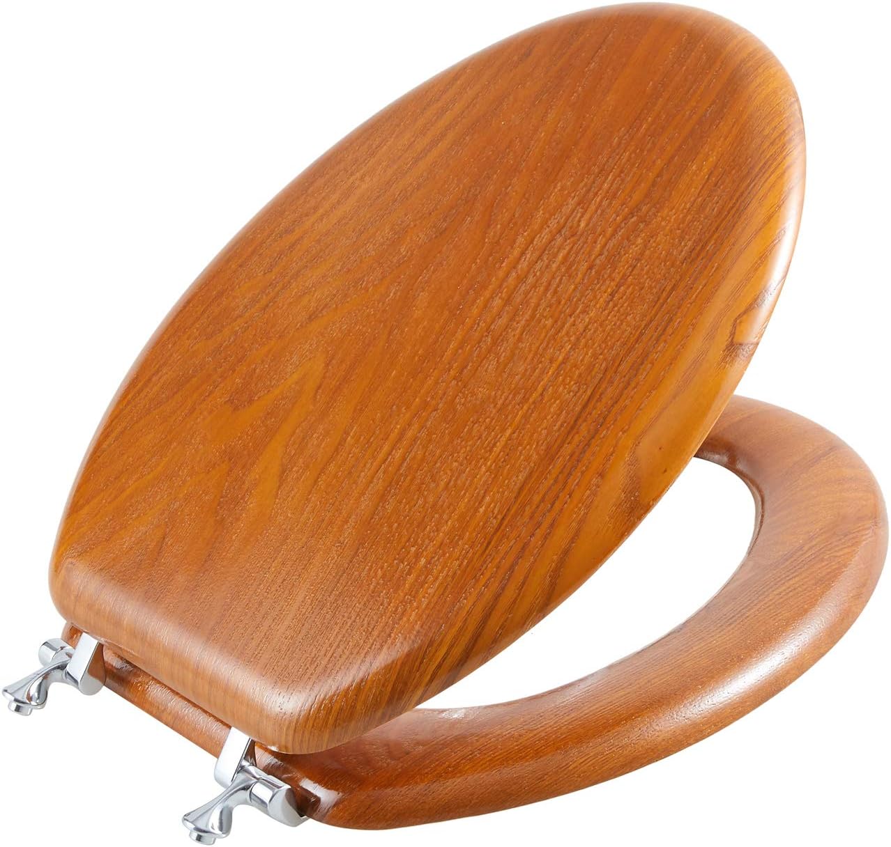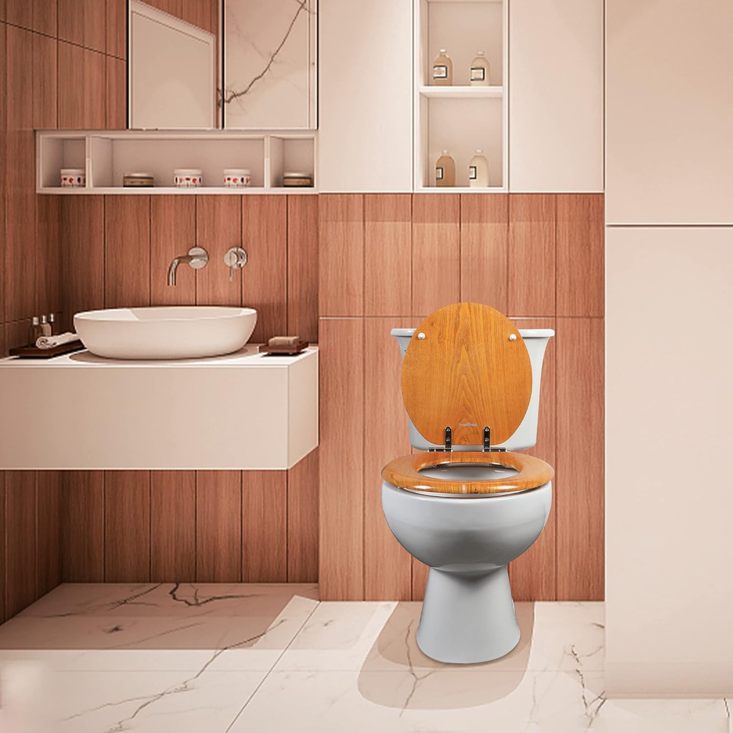 Angel Shield Durable Wood Veneer Natural Toilet Seat Metal Hinged Easy Clean Anti-scratch American Standard(Elongated,Wood Color)