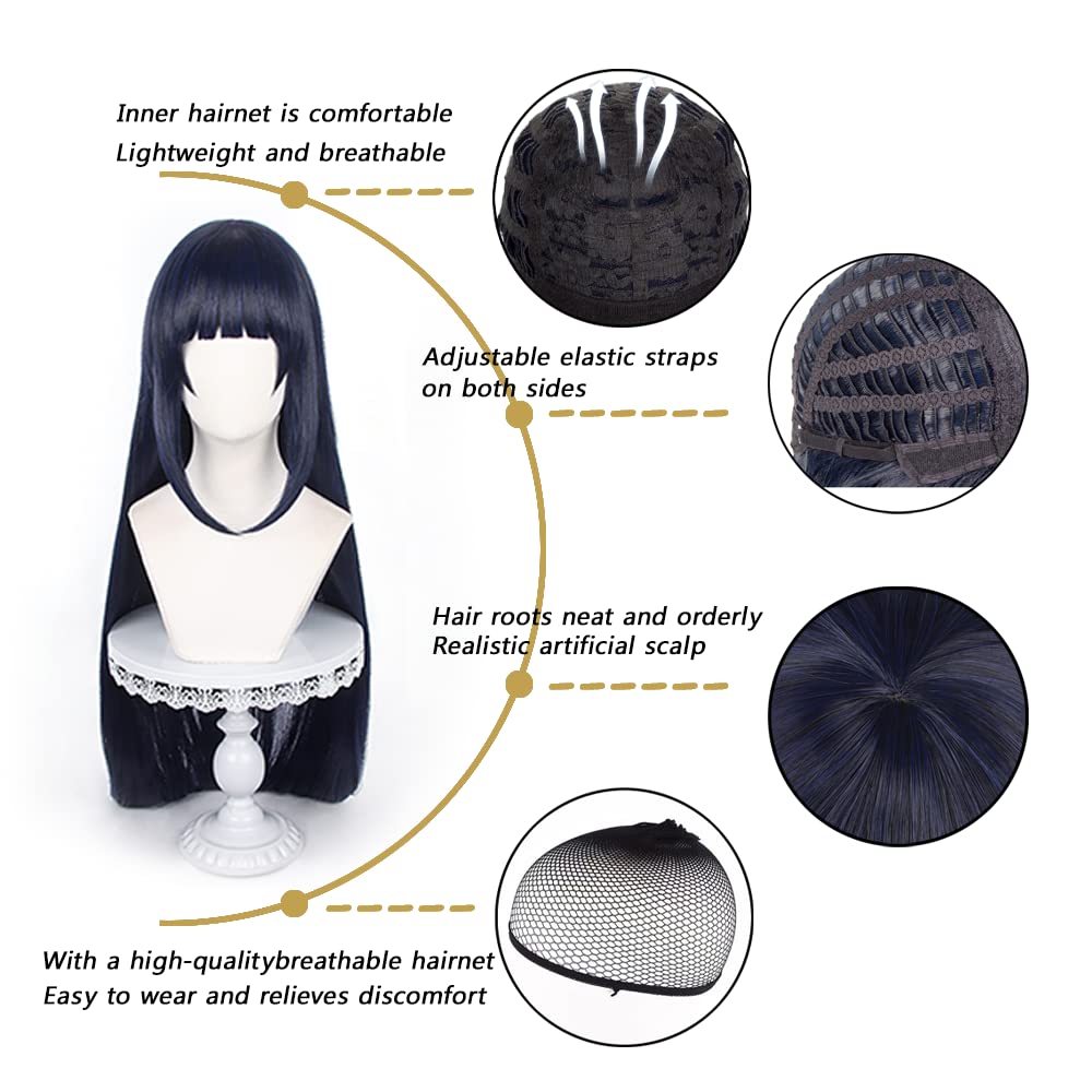 Anime Cosplay Wig Blue Purple Medium Long Straight Hair for Animation Exhibition Christmas Party Halloween Carnival
