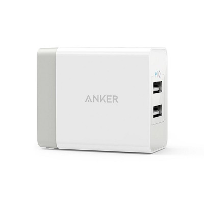 name: Anker 2-Port PowerPort 24W Wall Charger - White