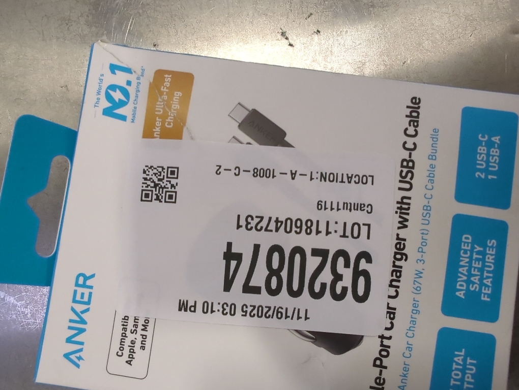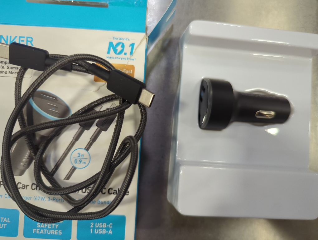 Anker 3-Port 67W Car Charger with 3' USB-C to USB-C Cable - Black