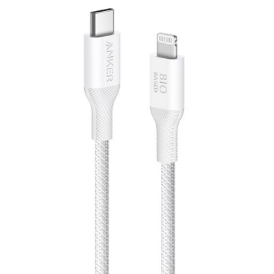 Anker 3' Bio-Braided Lightning to USB-C ECO Friendly Fast Charging Cable - White