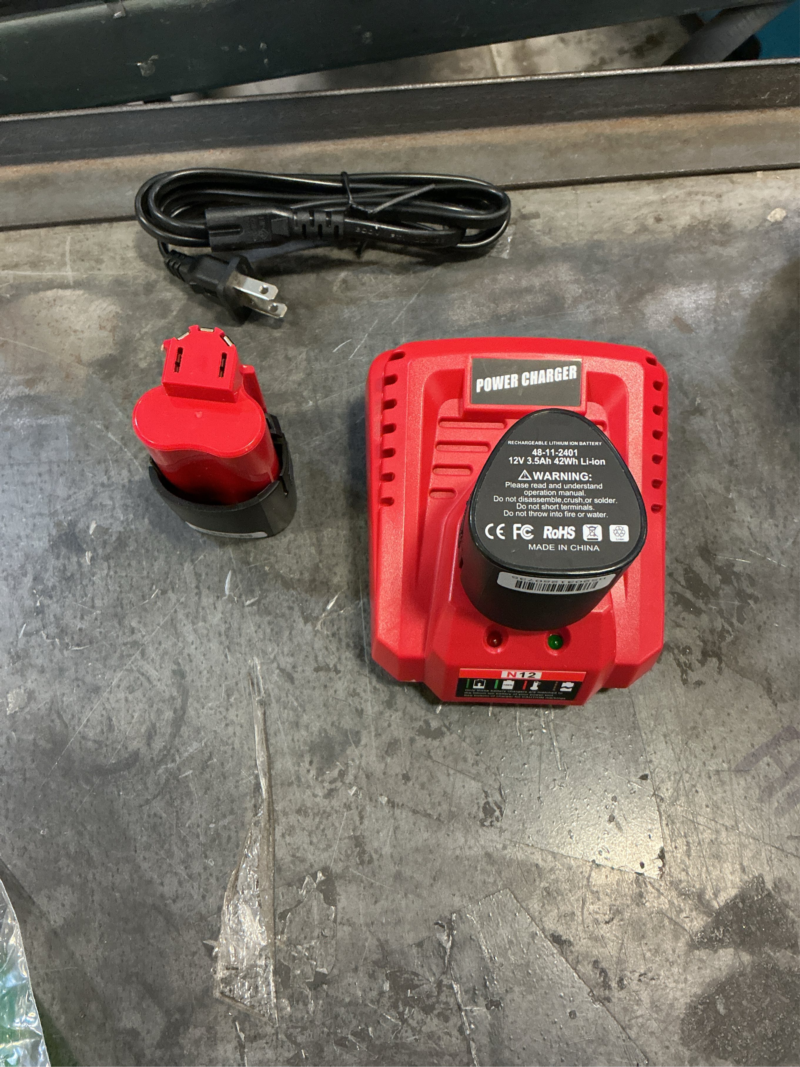 Replacement Milwaukee m12 starter kit includes 2 pack 3500mAh replacement Milwaukee M12 batteries and 1 pack replacement m12 Milwaukee battery charger. Battery Type: Li-ion. Voltage: 12V. Capacity: 3500mAh. Compatible for 48-11-2411 48-11-2420 48-11-2401 48-11-2402 48-11-2401 12 volt Cordless Tools. Replacement Milwaukee rapid charger for All 12V Milwaukee M12 Lithium-ion Battery. Diagnostics with LED indicator shows battery charging status, overcharged protection is active. Both batteries and charger integrated microchip prevents overcharging lengthens battery life. Offers long-lasting performance and durability.