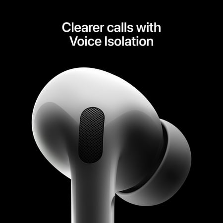 PIONEERING HEARING—AirPods Pro 2 unlock the world’s first all-in-one hearing health experience: a scientifically validated Hearing Test, clinical-grade Hearing Aid feature, and active Hearing Protection. Coming fall 2024. INTELLIGENT NOISE CONTROL—Active Noise Cancellation removes up to 2x more background noise. Transparency mode lets you hear the world around you, and Adaptive Audio seamlessly blends Active Noise Cancellation and Transparency mode for the best listening experience in any environment. And when you’re speaking with someone nearby, Conversation Awareness automatically lowers the volume of what’s playing. IMPROVED SOUND AND CALL QUALITY—The Apple-designed H2 chip helps to create deeply immersive sound. The low-distortion, custom-built driver delivers crisp, clear high notes and full, rich bass in stunning definition. Voice Isolation improves the quality of phone calls in loud conditions. CUSTOMIZABLE FIT—Includes four pairs of silicone tips (XS, S, M, L) to fit a wide range of ear shapes and provide all-day comfort. The tips create an acoustic seal to help keep out noise and secure AirPods Pro 2 in place. DUST, SWEAT, AND WATER RESISTANT—Both AirPods Pro 2 and the MagSafe Charging Case are IP54 dust, sweat, and water resistant, so you can listen comfortably in more conditions. PERSONALIZED SPATIAL AUDIO—With sound that suits your unique ear shape along with dynamic head tracking, AirPods Pro 2 deliver an immersive listening experience that places sound all around you. You can also listen to select songs, shows, and movies in Dolby Atmos. A HIGHER LEVEL OF CONTROL—Simply swipe, press, and hold the stem to manage playback functions using Touch control. And with Siri Interactions, simply nod your head yes or shake your head no when Siri asks if you’d like to hear a message, answer a call, or manage a notification. LONG BATTERY LIFE—Get up to 6 hours of listening time with Active Noise Cancellation enabled. And get up to 30 hours of total listening time with Active Noise Cancellation enabled, using the case. A MORE CAPABLE CASE—Keep track of AirPods Pro 2 with Precision Finding and a built-in speaker. A lanyard loop helps keep your AirPods Pro 2 close. Charge with an Apple Watch or MagSafe charger, USB-C Charge Cable, or Qi-certified charger. Legal 1Compared with AirPods Pro (1st generation) and AirPods 4 with Active Noise Cancellation. 2Device performance and noise control features like Active Noise Cancellation, Adaptive Audio, and Transparency can be affected by debris or earwax buildup. Clean the device regularly to maintain performance and full feature functionality. Refer to support.apple.com/102672 for cleaning instructions. 3Spatial Audio works with compatible content in supported apps. iPhone with TrueDepth camera required to create personalized profile. 4The Hearing Test and Hearing Aid features are expected fall 2024. They will be supported on AirPods Pro 2 with the latest firmware paired with a compatible iPhone or iPad with iOS 18 or iPadOS 18 and later. The Hearing Aid feature is also supported on Mac running macOS Sequoia and later. It is pending FDA authorization. 5The Hearing Protection feature works with AirPods Pro 2 with the latest firmware when paired with a compatible iPhone, iPad, or Mac with iOS 18, iPadOS 18, or macOS Sequoia and later. Feature is only available in the U.S. and Canada. See https://support.apple.com/120850 for total attenuation and more information. 6Available on compatible devices running iOS 18, iPadOS 18, or macOS Sequoia and later when paired with AirPods 4, AirPods 4 with Active Noise Cancellation, or AirPods Pro 2 with the latest firmware. 7AirPods Pro 2 are dust, sweat, and water resistant for non-water sports and exercise, and they are IP54 rated. Dust, sweat, and water resistance are not permanent conditions. 8Testing conducted by Apple in August 2023 using preproduction AirPods Pro 2 with MagSafe Charging Case (USB-C) and software paired with preproduction iPhone 15 Pro units and software. The playlist consisted of 358 unique audio tracks purchased from the iTunes Store (256-Kbps AAC encoding). Volume was set to 50% and Active Noise Cancellation was enabled. With Spatial Audio and Head Tracking enabled, listening time was up to 5.5 hours. Testing consisted of full AirPods Pro battery discharge while playing audio until the first AirPod Pro stopped playback. Battery life depends on device settings, environment, usage, and many other factors. 9Testing conducted by Apple in August 2023 using preproduction AirPods Pro 2 with MagSafe Charging Case (USB-C) and software paired with preproduction iPhone 15 Pro units and software. The playlist consisted of 358 unique audio tracks purchased from the iTunes Store (256-Kbps AAC encoding). Volume was set to 50% and Active Noise Cancellation was enabled. Testing consisted of full AirPods Pro battery discharge while playing audio until the first AirPod Pro stopped playback. The drained AirPods Pro were charged to 100 percent, then audio playback was resumed until the first AirPod Pro stopped playback. This cycle was repeated until both the AirPods Pro and charging case were fully discharged. Battery life depends on device settings, environment, usage, and many other factors. 10Precision Finding requires a U1-equipped iPhone; availability varies by region. 11MagSafe charging requires a compatible MagSafe charger. Wireless charging requires a Qi-certified wireless charger. AirPods Pro 2 charging case also works with the Apple Watch charger or USB-C connector. Technical specifications Go to apple.com/airpods-pro/specs/ for a complete set.