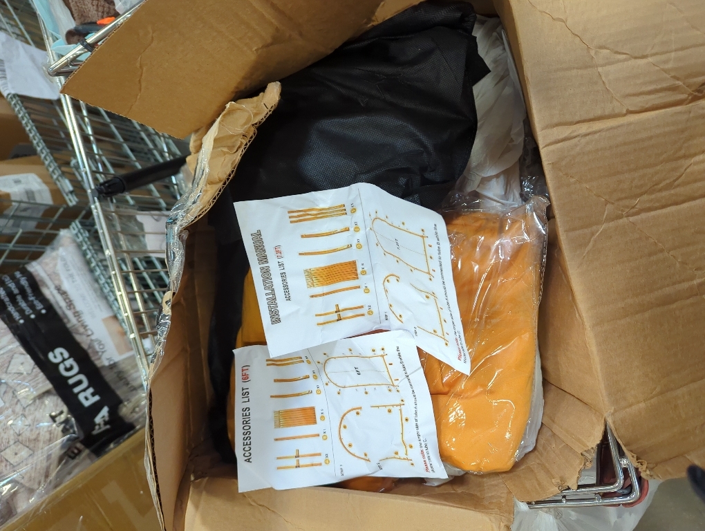 Arch Backdrop Stand and Covers Set Package contains 2 Gold arches stand for wedding and 2 White Spandex arch backdrop covers with dimensions of 7.2FT and 6FT.. A large tote bag,2 x storage bags, A pair of protective gloves,8 Pcs Outdoor Landscape Staples.