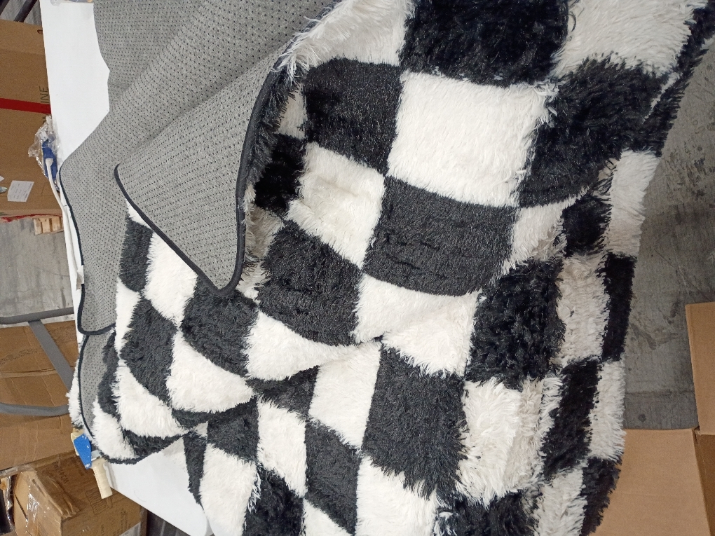 Area Rugs for Bedroom Living Room, (96cm x 121cm) Black and White Fluffy Soft Checkered Rug Fuzzy Shag Shaggy Carpet, Indoor Plush Floor Rugs for Kids Boys Girls Teen Dorm Nursery Home Decor Aesthetic