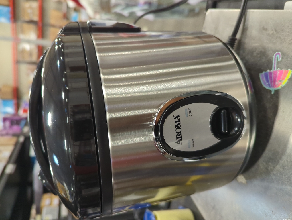Easily prepare up to 8 cups of cooked rice in this Aroma Rice Cooker. Made of stainless steel with a brushed finish and a cool touch exterior. The cooker has an removable non stick cooking pot and a lid, making cleaning up easy. Includes a steam tray, serving spatula, rice measuring cup and instruction manual. Features a locking lid, keep warm function, condensation collector. Great for rice, chili or soups!