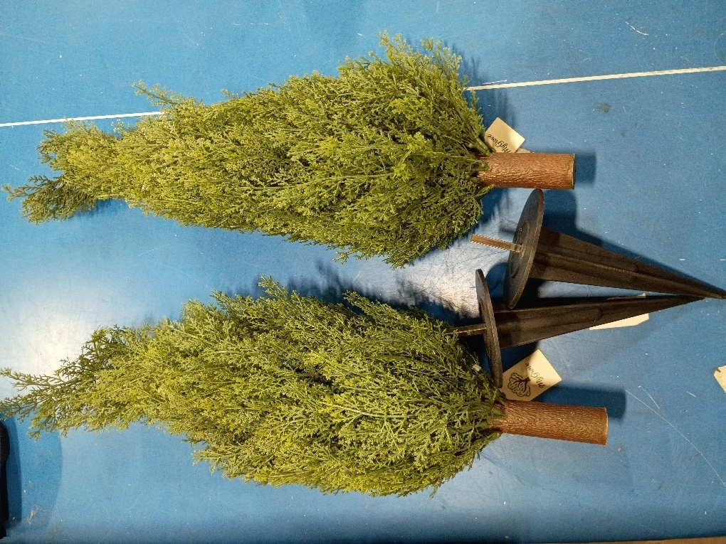 Artificial Cedar Topiary Trees with Ground Spike, UV Resistant Fake Bushes Artificial Shrubs 2 Pack Faux Cypress Plants for Outdoor Indoor Front Porch Garden