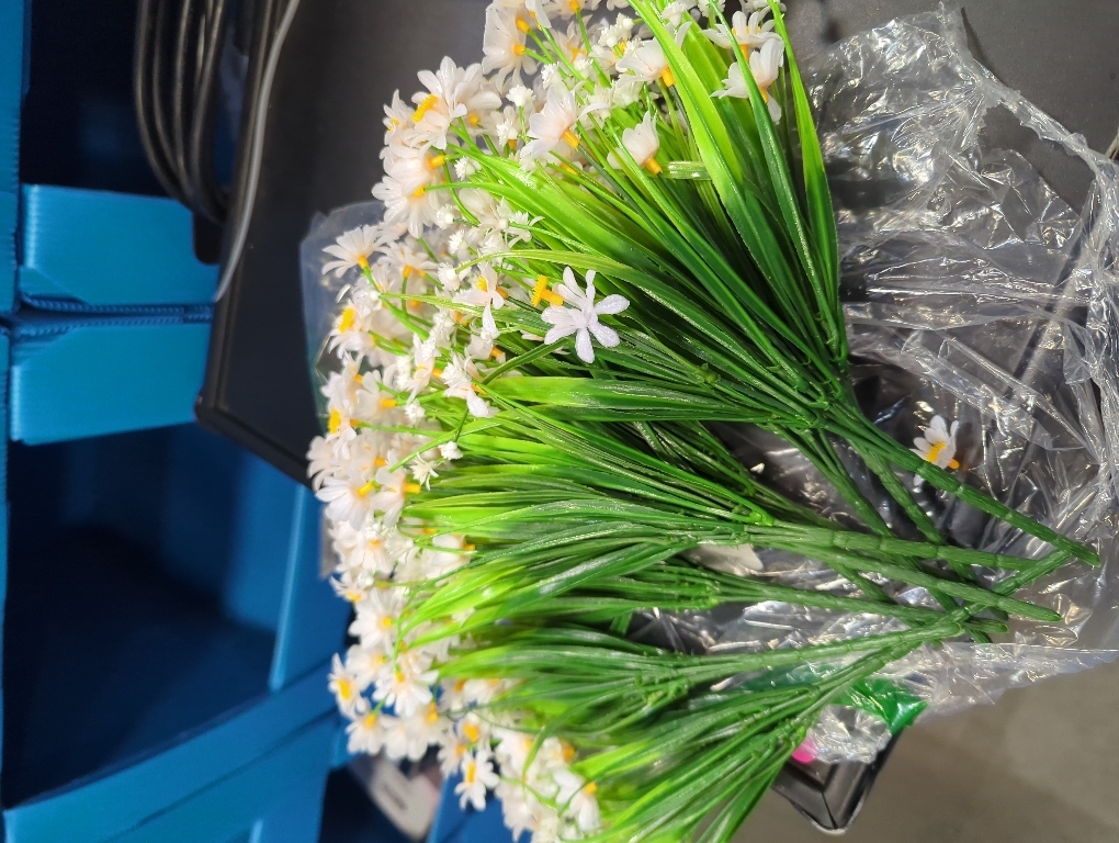 UV Resistant daisy Flowers :The lifelike artificial outdoor flowers are UV resistant.Faux plastic flowers and leaves, fresh color,poisonless and harmless,Artificial flowers are perfect for any landscaping project or decor style.