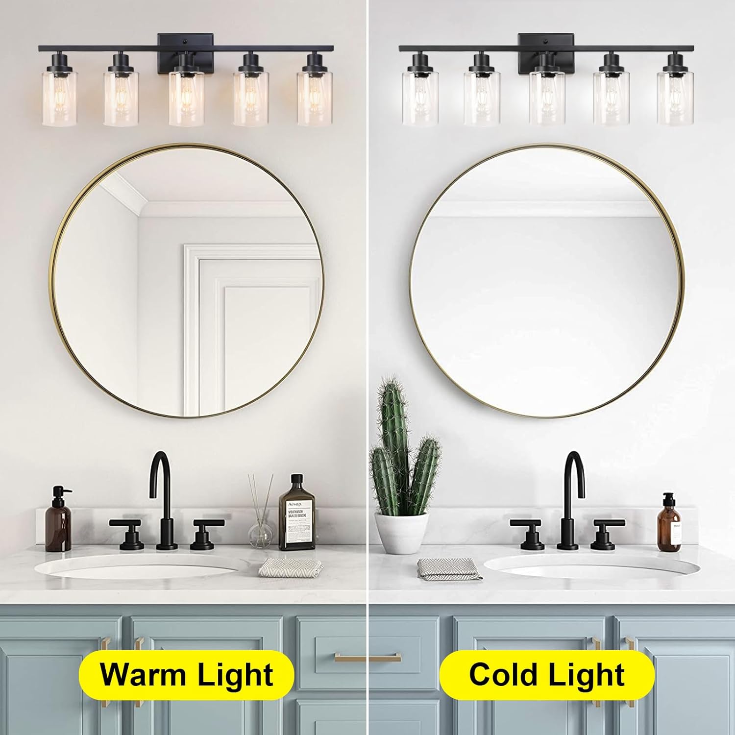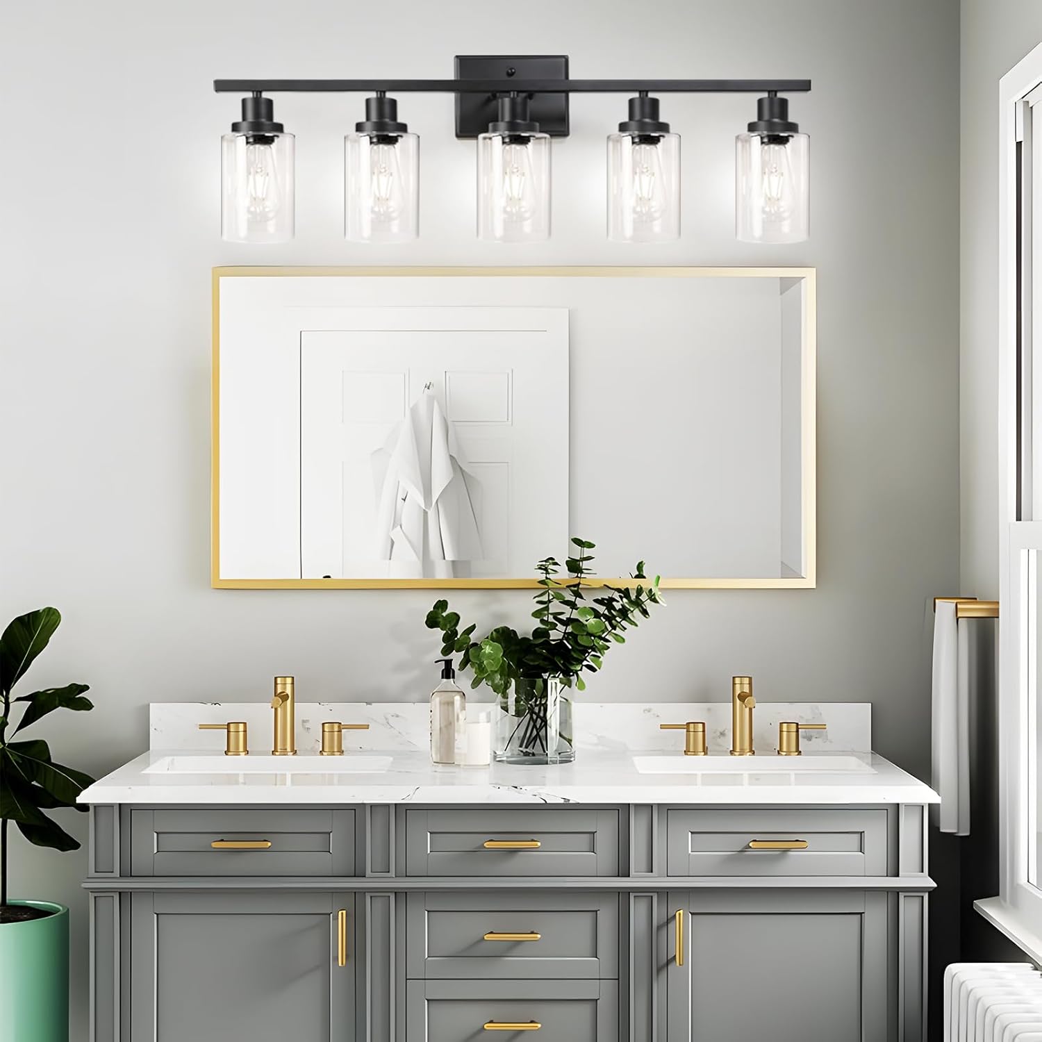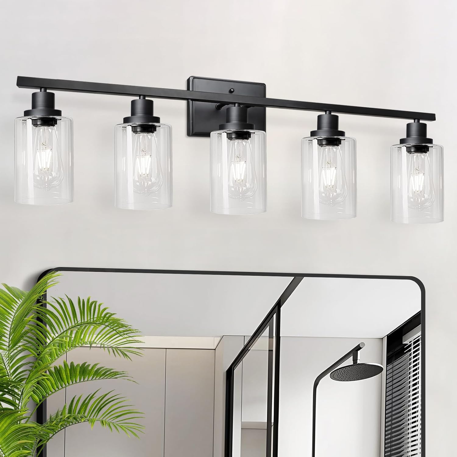 Ascher 5-Light 37.8" Wall Sconces, Modern Vanity Light Fixture with Clear Glass Shade, Black Finish Wall Light for Mirror Bedroom Hallway, E26 Base (Bulbs Not Included)