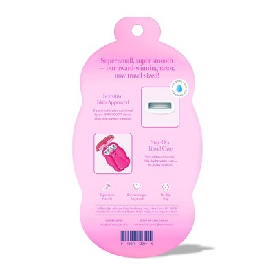 Your Razor just booked a vacation! Meet the Mini Razor, designed for a precise shave on-the-go. Featuring the same five patented blades and hydrating SKINCLOUD™ Serum Strip as our award-winning Razor Kit, this mini travel razor for women ensures a smooth shave wherever you roam. This travel razor’s compact, ergonomic handle ensures control – perfect for reaching tricky spots like the bikini line. Plus, the vented stay-dry travel case lets your razor dry fully in-between uses, meaning no goopy mess! In the iconic Super Pink shade, it’s theperfect companion for every adventure, from daily touch-ups to exotic getaways.