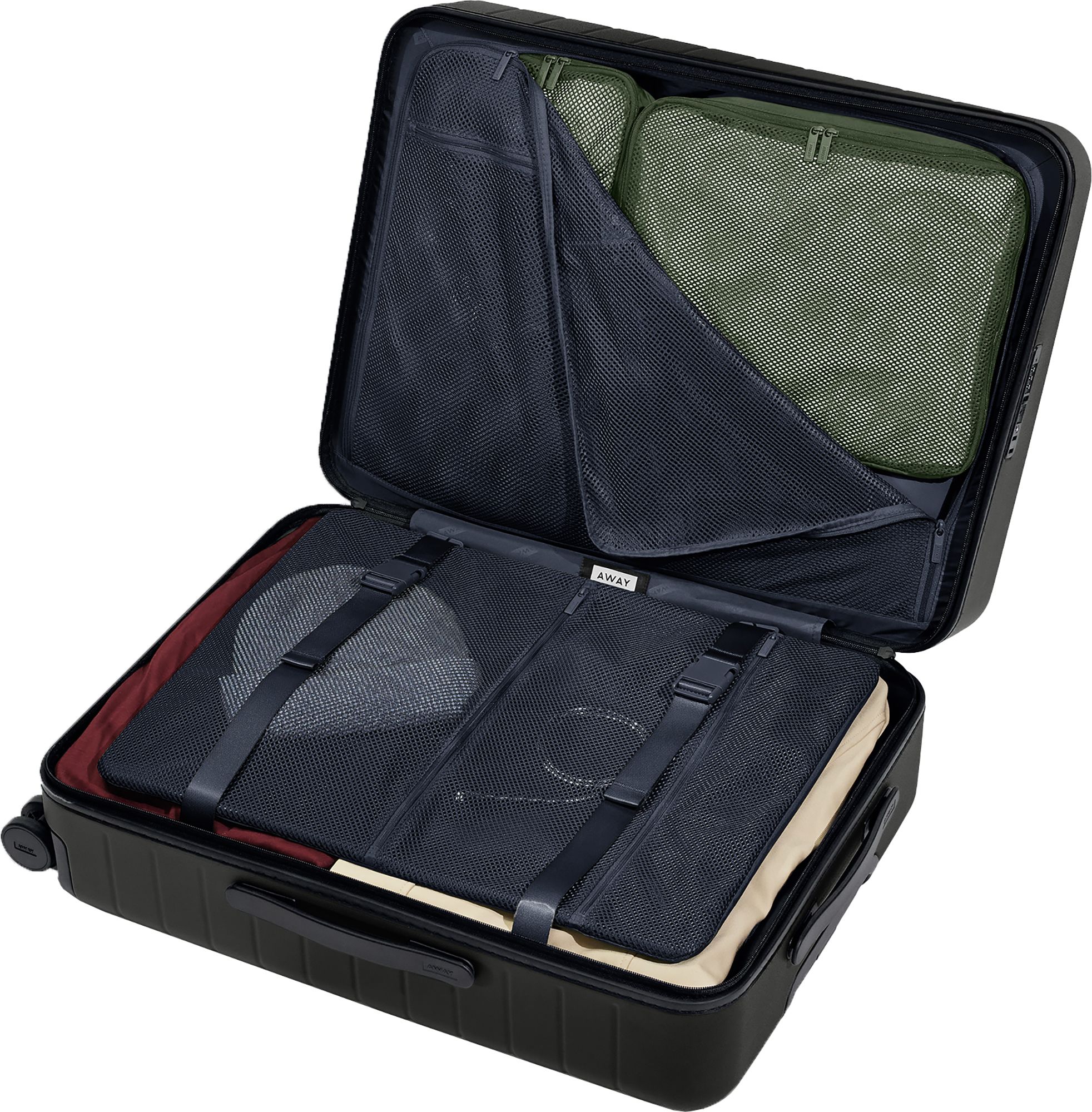 Interior compression system to pack down the suitcase's contents while protecting your belongings