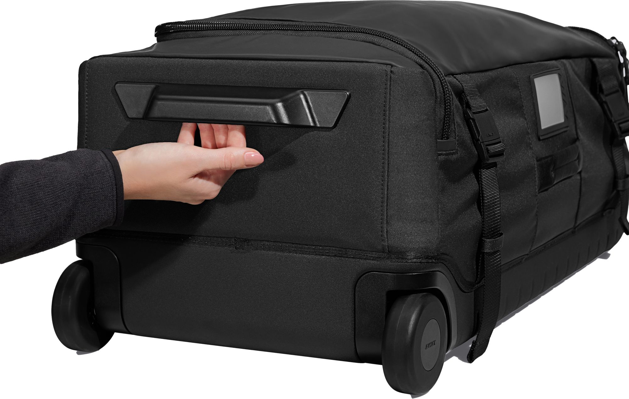 Rolling duffle designed with a signature polycarbonate backing for ideal durability
