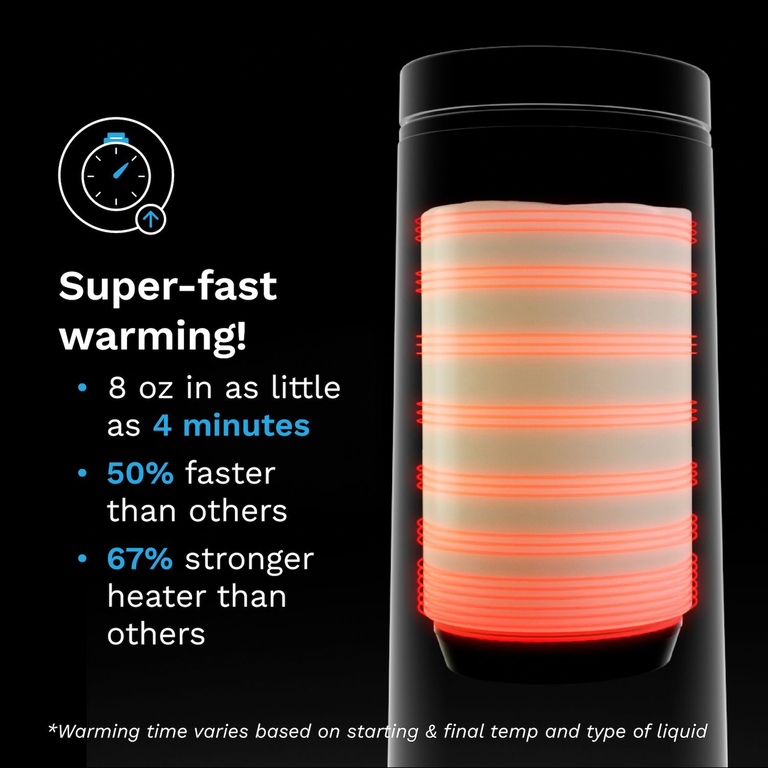 - Warms 8-oz. in as little as 4 minutes