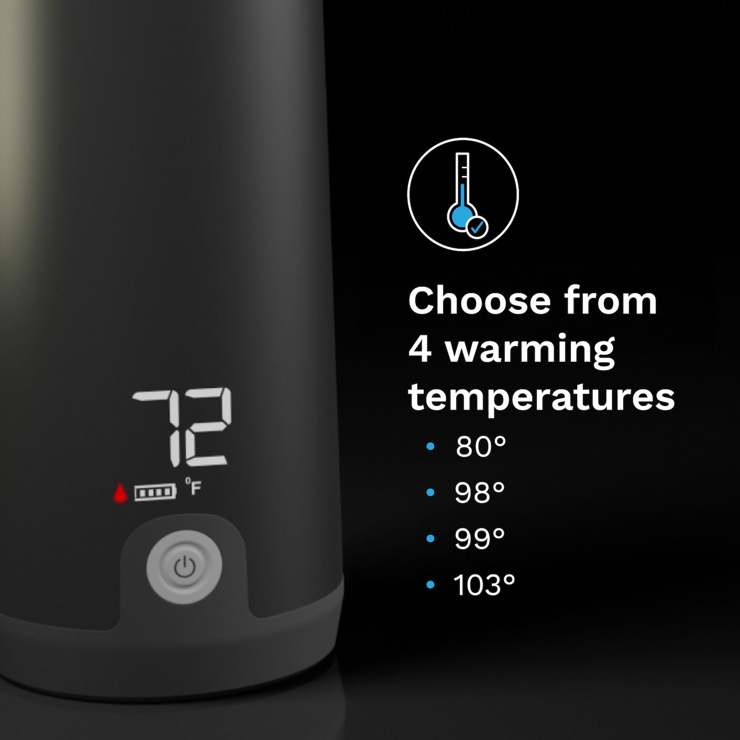 - Choose from 80°F, 98°F or 103°F for formula/water, or 99°F for milk storage bags