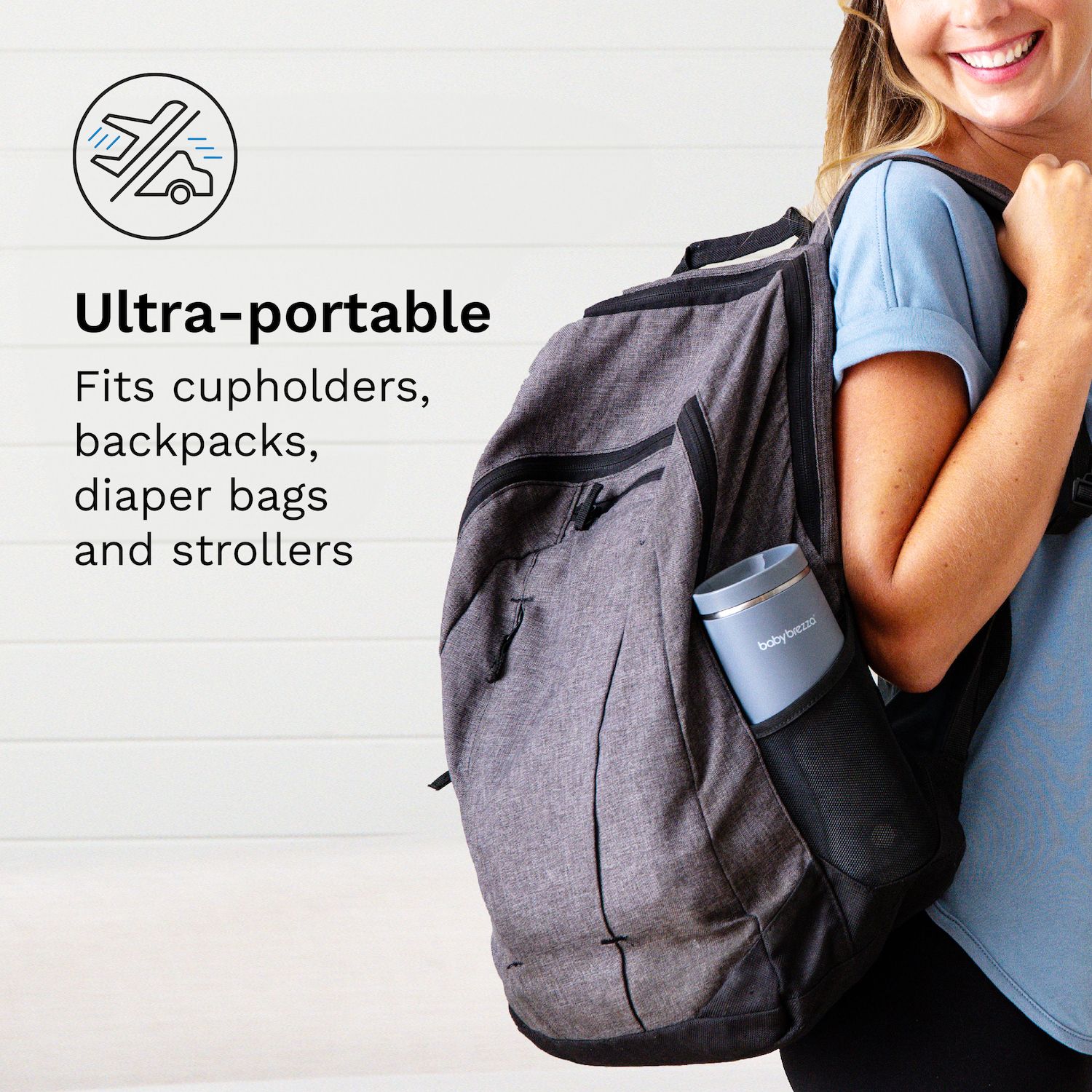 - Easily fits in cupholders or bottle pockets in diaper bags, backpacks, etc.