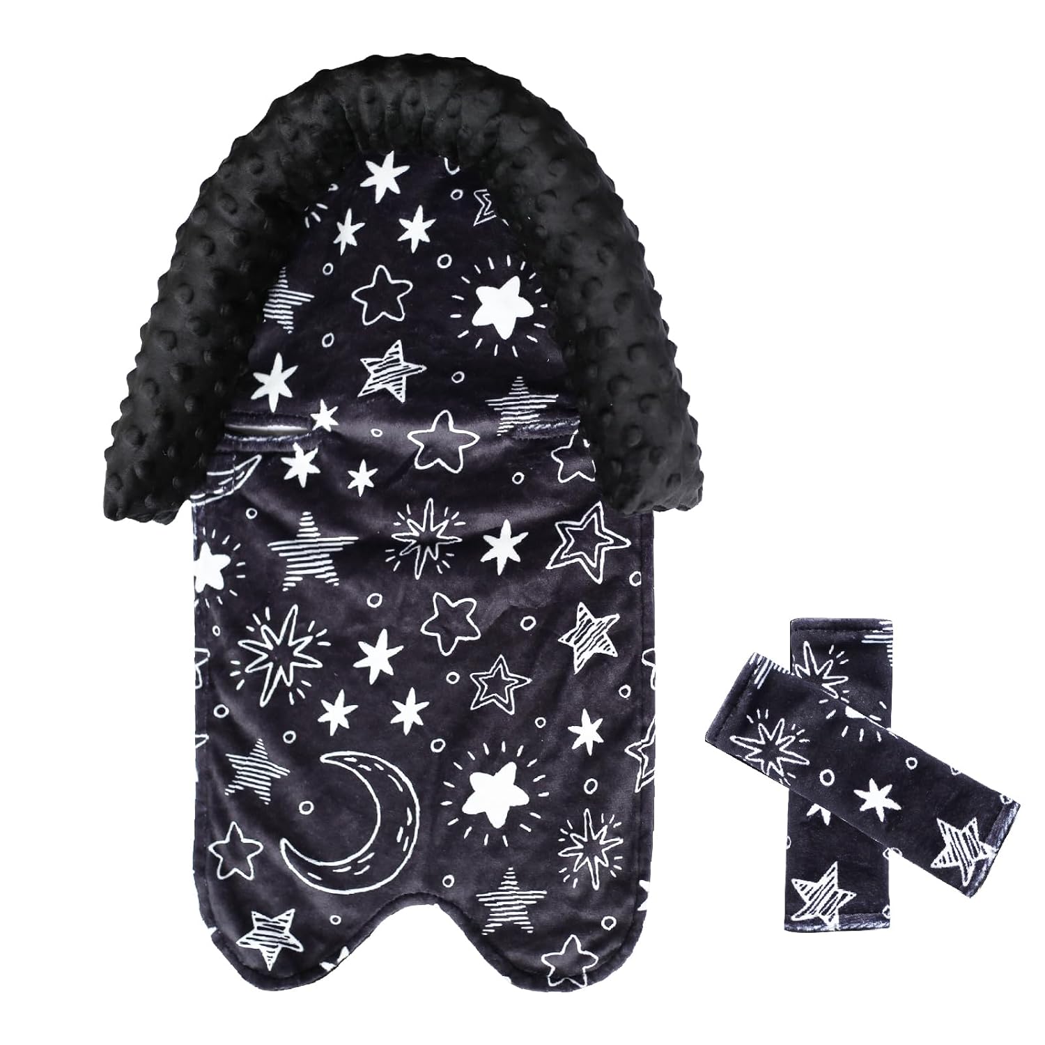 Baby Car Seat Head Support for Boys, Infant Carseat Insert & Seat Belt Covers for Car Seat Super Soft Minky Newborn Headrest Cushion for Baby Carseats,Stroller, Bouncer (Black)