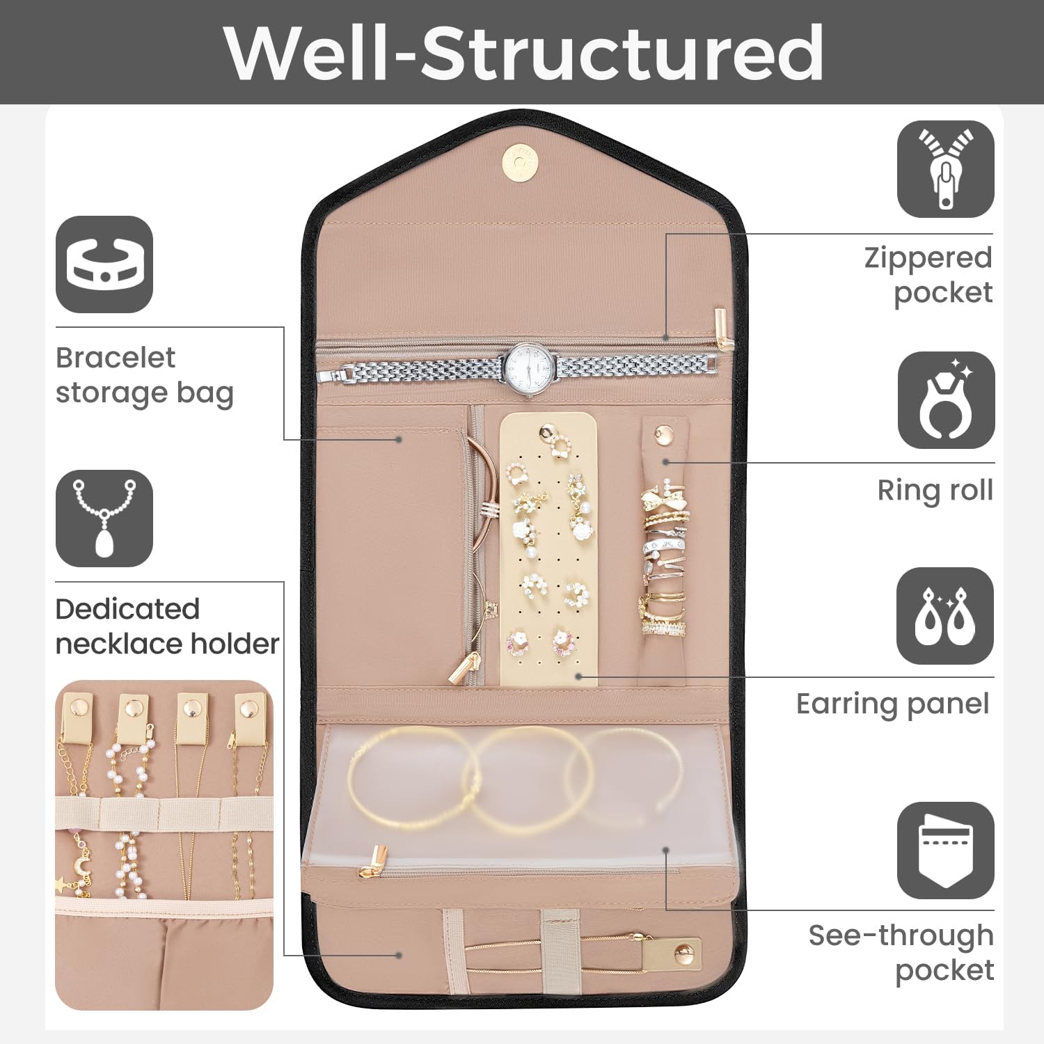 BAGAIL Hanging Toiletry Bag for Women Water-resistant Cosmetic Bag Large Capacity Travel Makeup Organizer for Full-Sized Travel Essentials(Classic Jewelry Bag, Black)